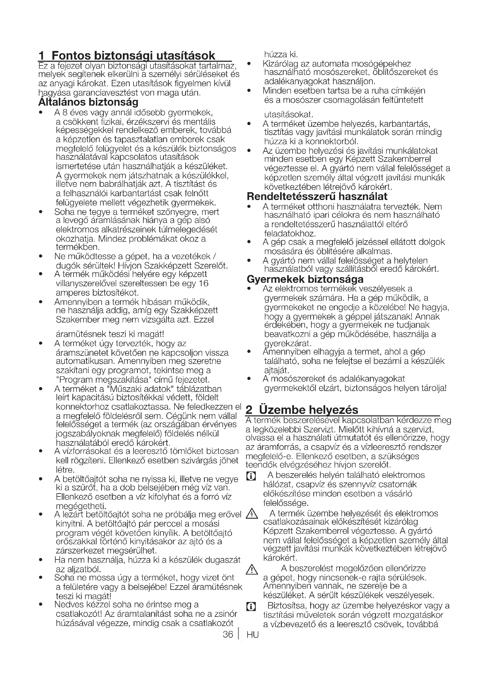 Üzembehelyezéskorgyőződjönmegróla, hogyahideg-ésmelegvizescsatlakoztatások megfelelőek-e.Máskülönbenamosás végeztévelaruhákforrókmaradhatnak,illetve elkophatnak.