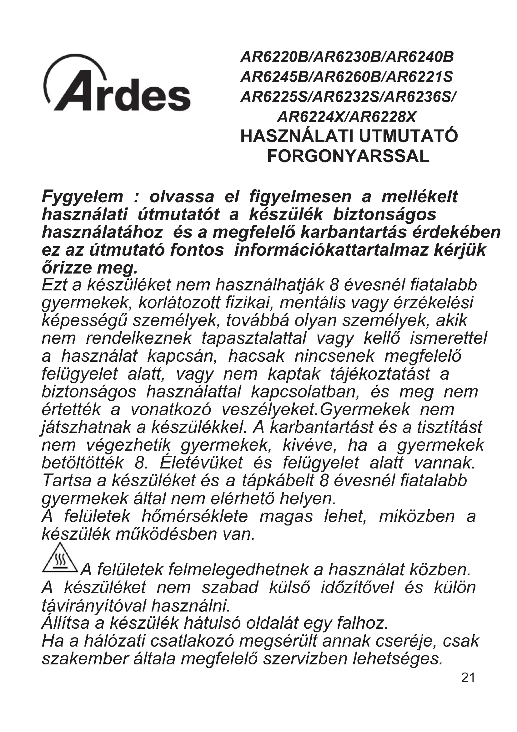 HASZNÁLATI ÚTMUTATÓ Gustavo AR6225S ARDES