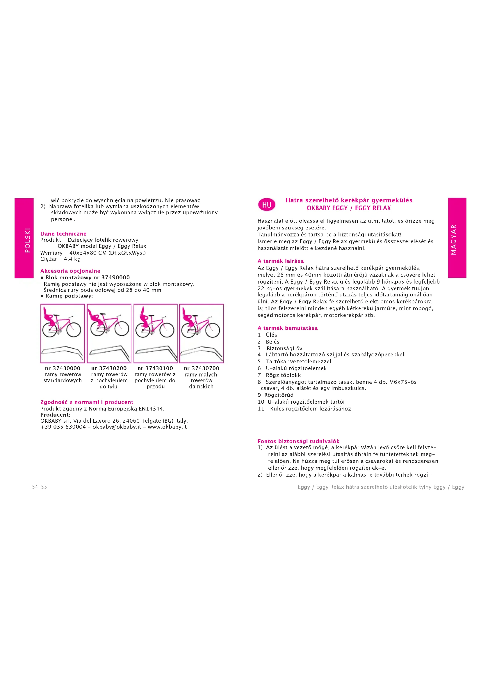 Eggy 50 - Gyermek kerékpárülés OKBABY - Ingyenes használati útmutató