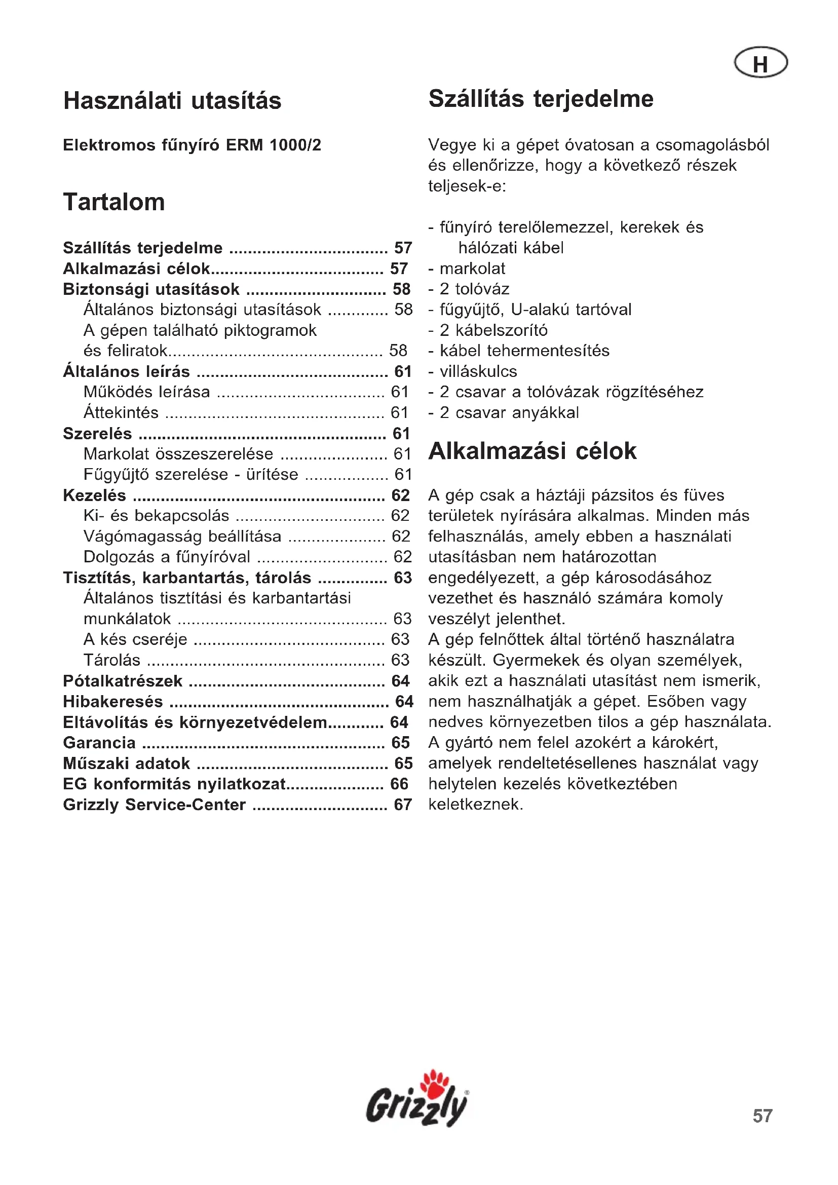 ERM 10002 - Fűnyíró Grizzly - Ingyenes használati útmutató