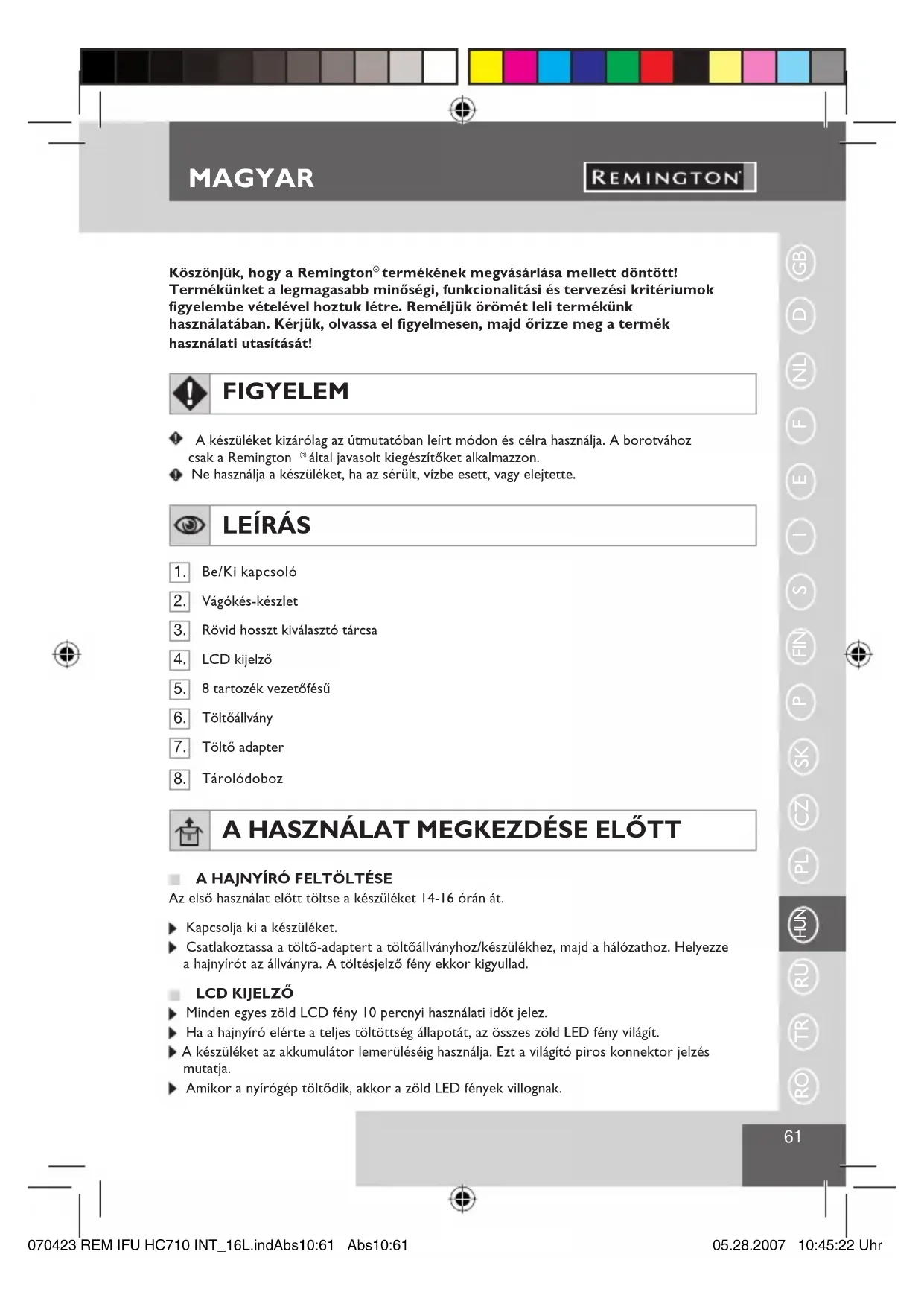 HASZNÁLATI ÚTMUTATÓ HC710 REMINGTON