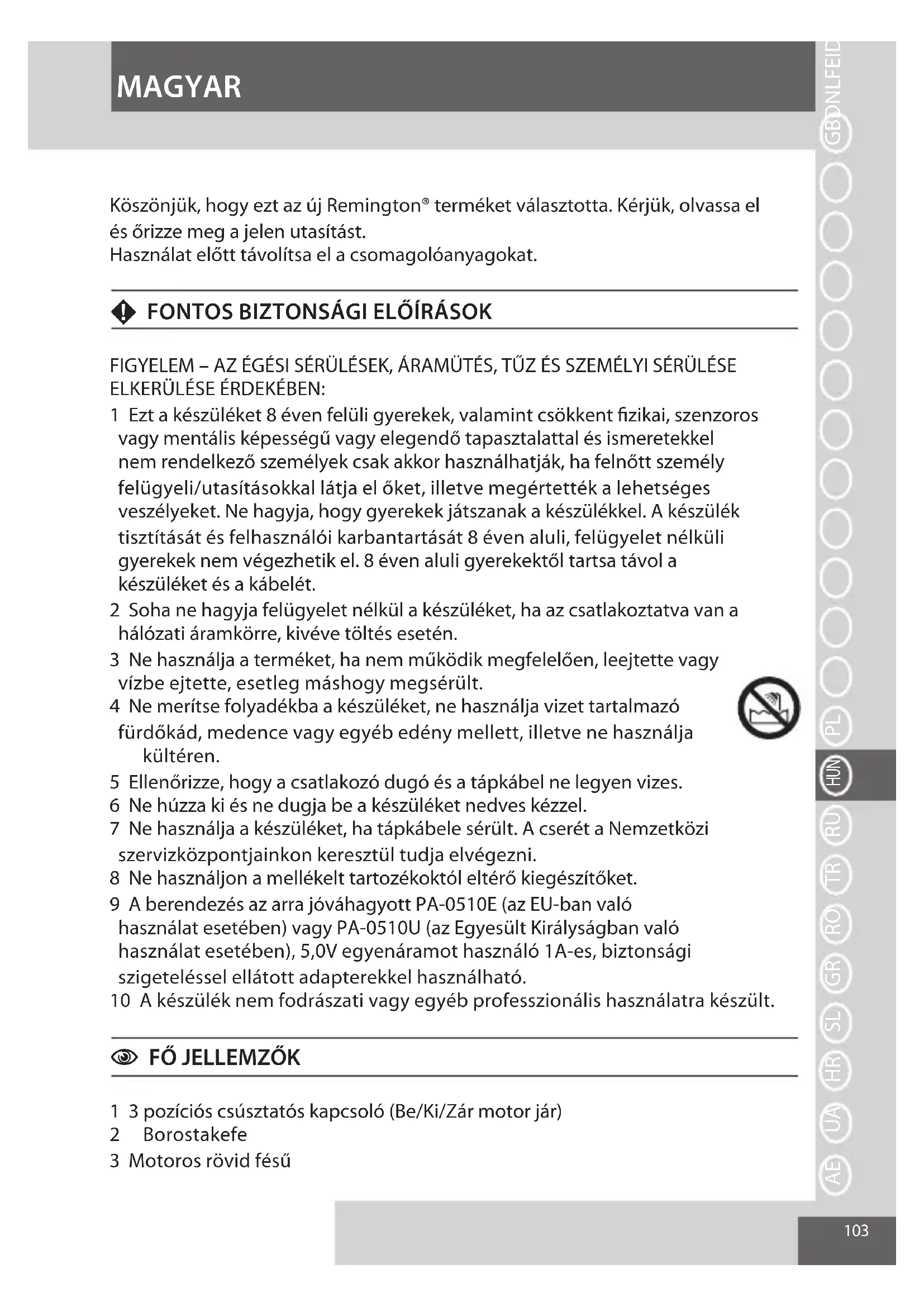 Köszönjuk, hogy=ezt az új Remington® terméket valasztotta. Kérjuk, olvassa el és orizze meg a jelen utasítást.