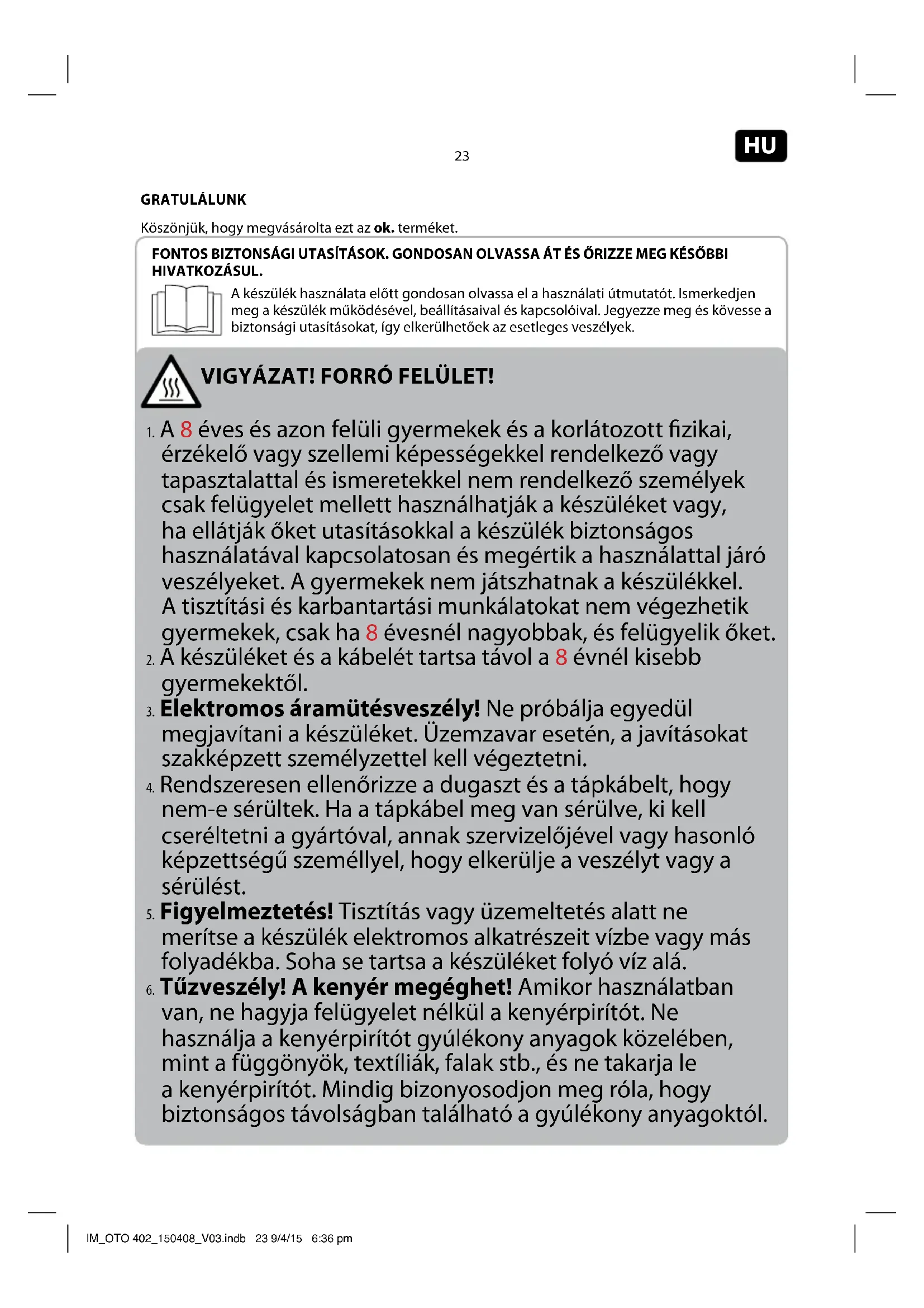 HASZNÁLATI ÚTMUTATÓ OTO 402W OK
