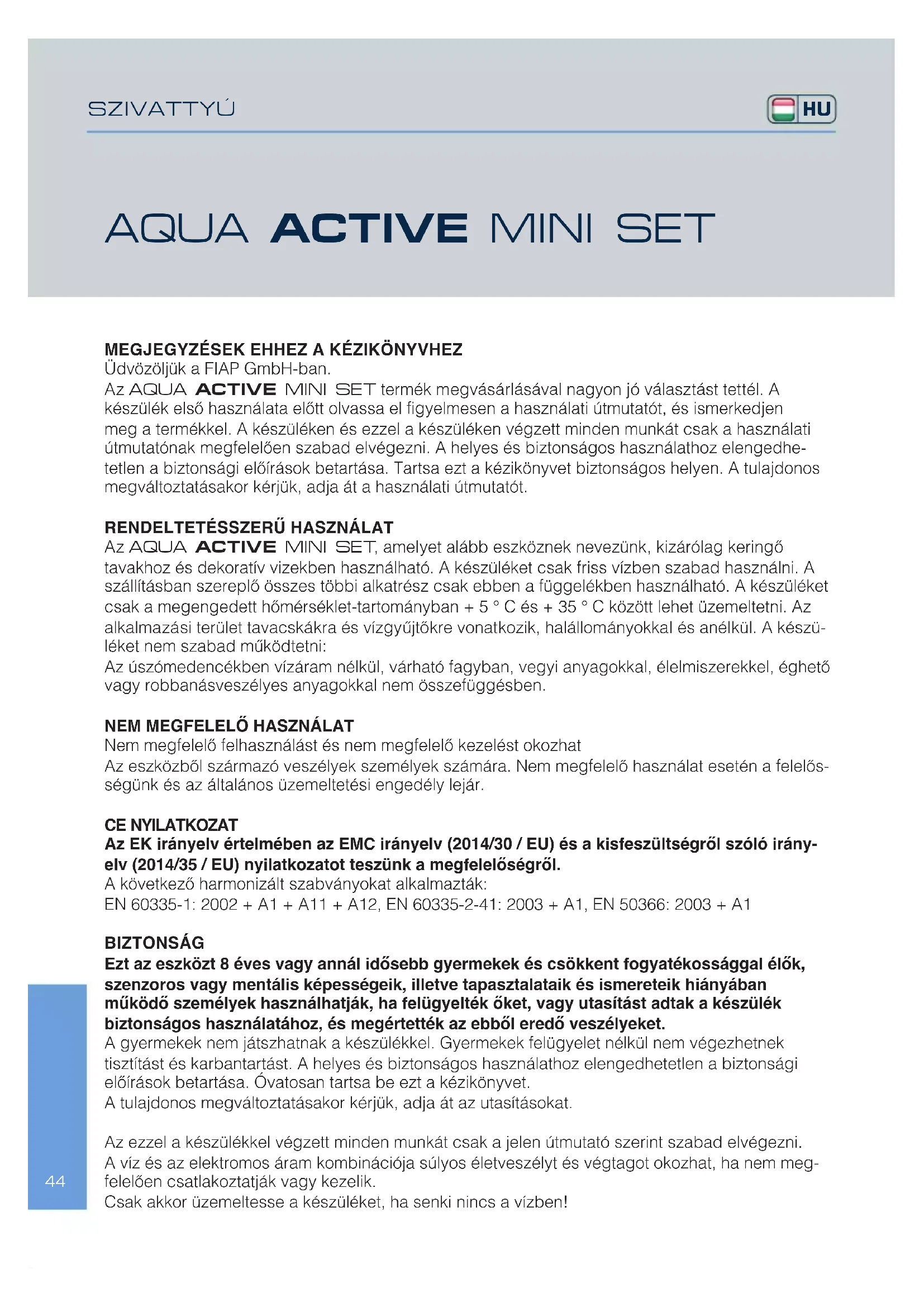 HASZNÁLATI ÚTMUTATÓ Aqua Active Mini set 3000 Fiap