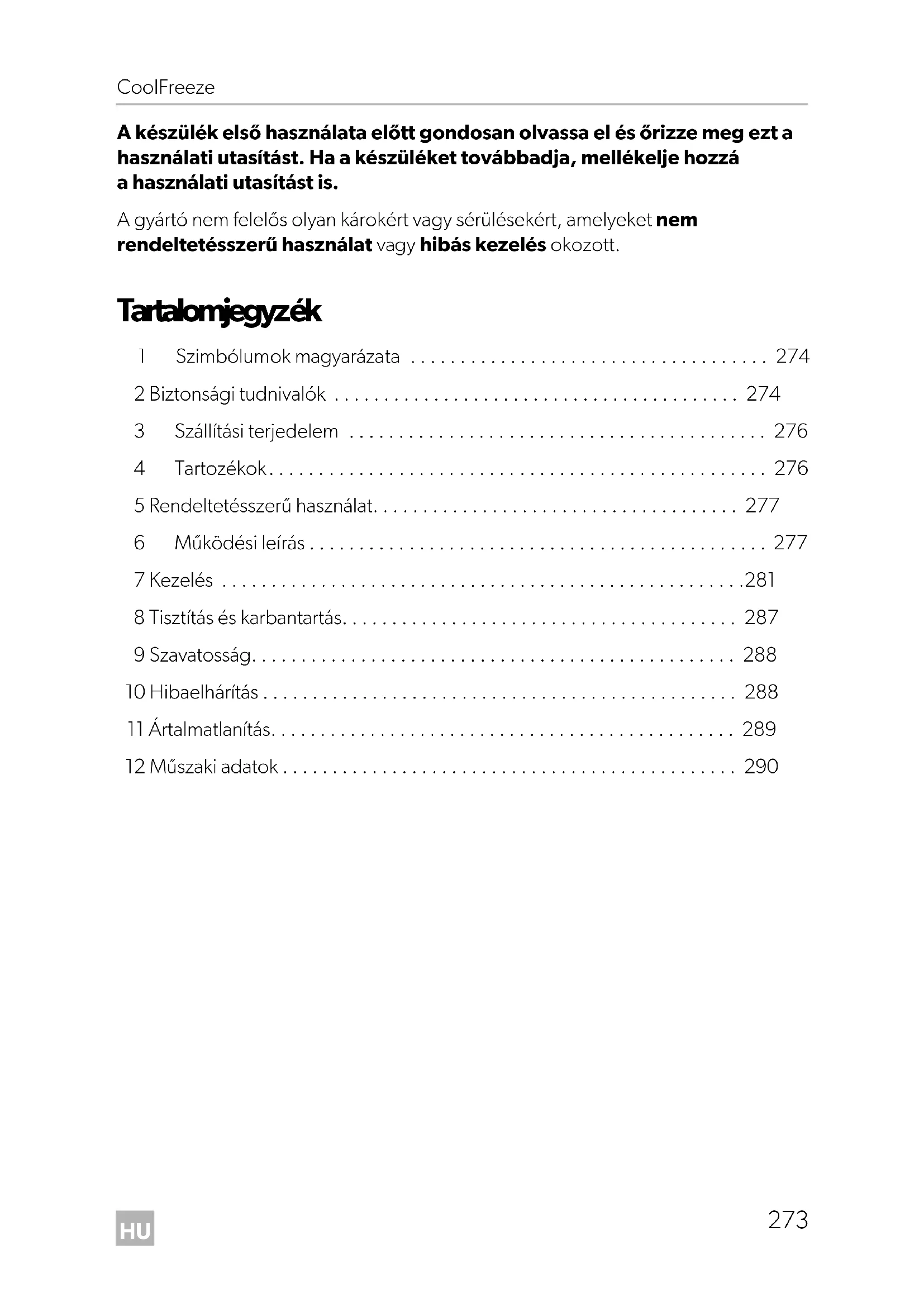 - 2 Biztonsági tudnivalók p. 274