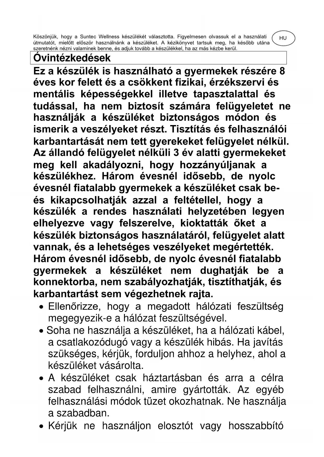 - Ha reklamációt szeretne benyújtani, akkor a készüléket eredeti csomagolásában a pénztári blokkal együtt vigye vissza az üzletbe. A gyors és kényelmes szervizről www.suntec-wellness.de weboldalunkon többet tudhat meg.