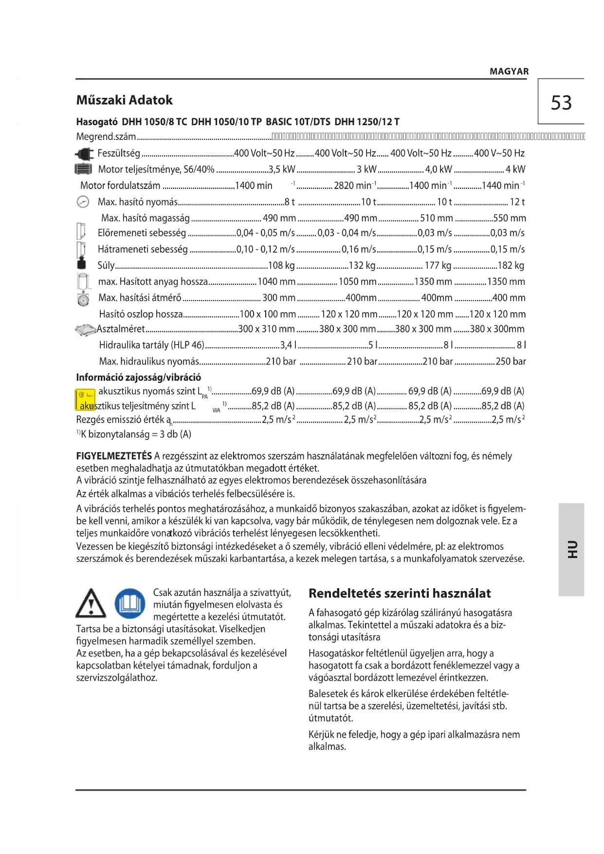 A fahasogató gép használata potenciális veszélyforrás. Ezért kizárólag a géppel megismerkedett és tapasztalt személyek használhatják. A kez előszemélyzetnek szoros munkaruhát és munkacipőt kell viselnie.