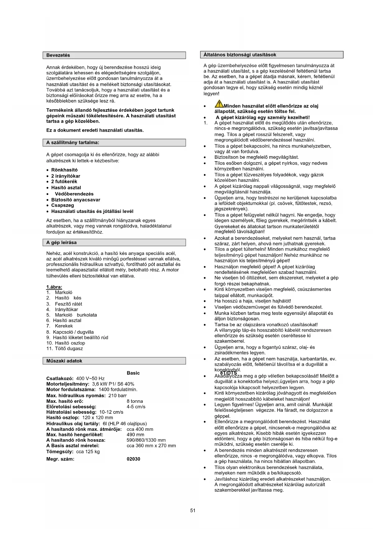 Kizarolag rendszeresen karbantartott es kezelt gep lehet megbizhato segedeszkoz. Elegtelen karbantartas es kezelés elore nem lathato balesetekhez es serulsekhez gezehet.