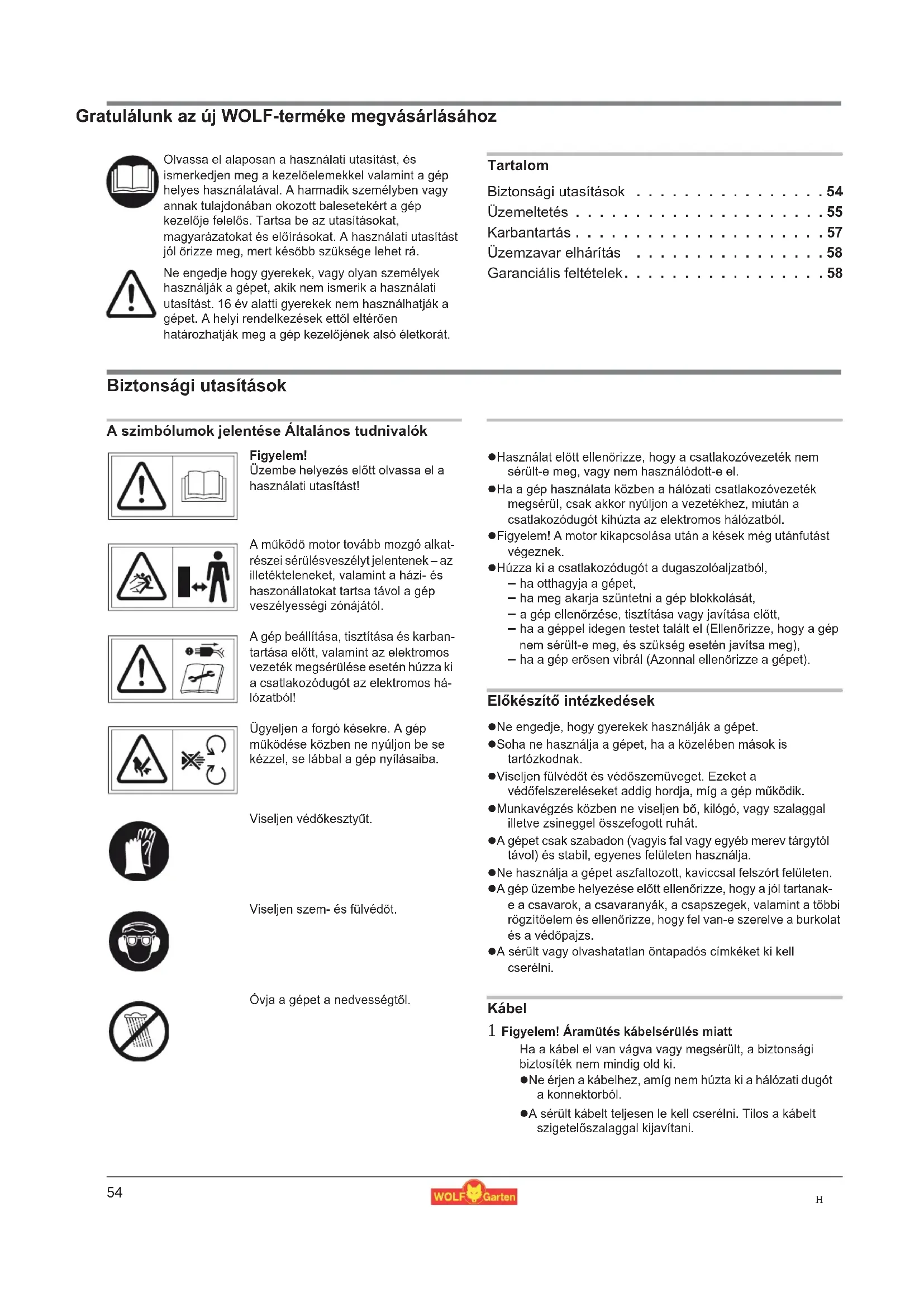 HASZNÁLATI ÚTMUTATÓ SDL 2500 Wolf Garten