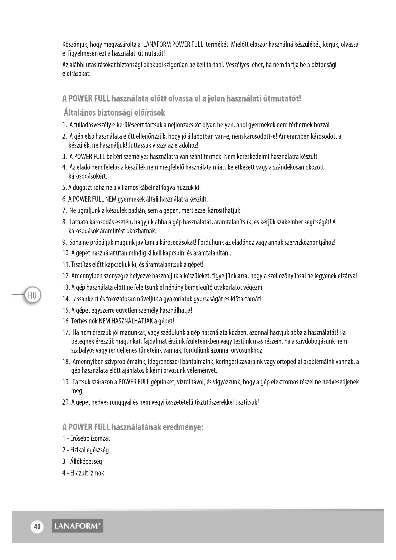 Power Full - Vibrációs lap LANAFORM - Ingyenes használati útmutató