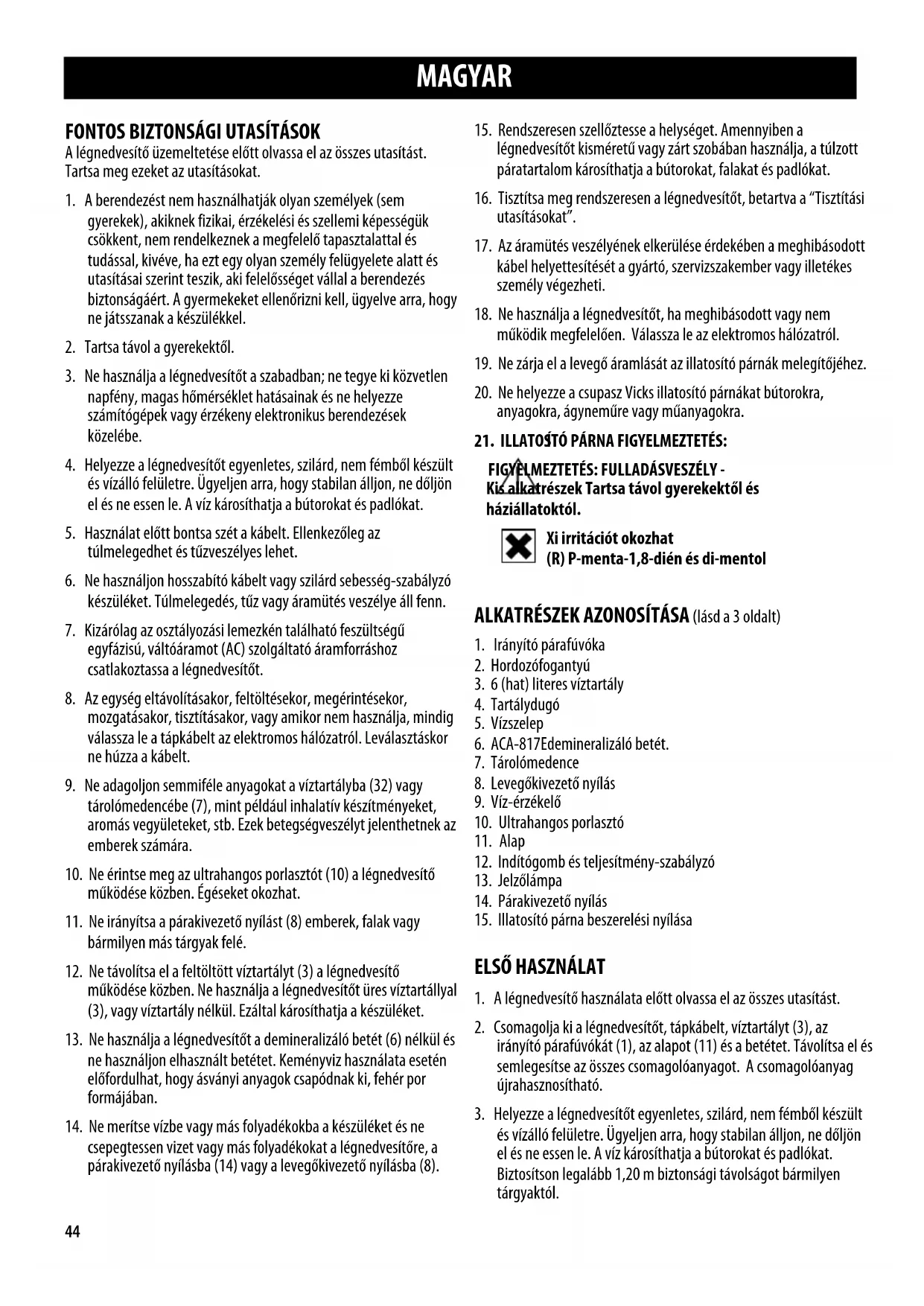 Kis alkatrészek Tartsa távol gyerekektől és háziállatoktól. Xi irritációt okozhat (R) P-menta-1,8-dién és di-mentol ALKATRÉSZEK AZONOSÍTÁSA (lásd a 3 oldalt)