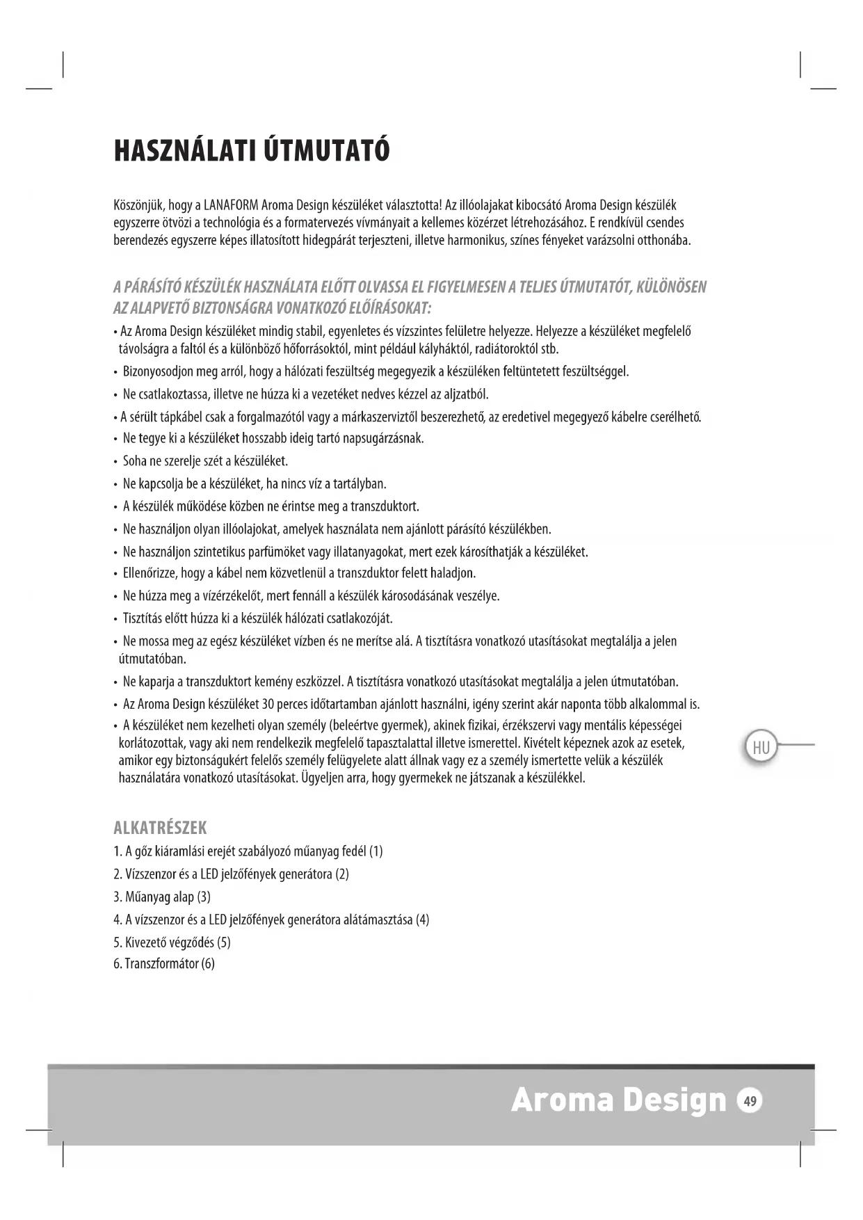HASZNÁLATI ÚTMUTATÓ Aroma Design LANAFORM