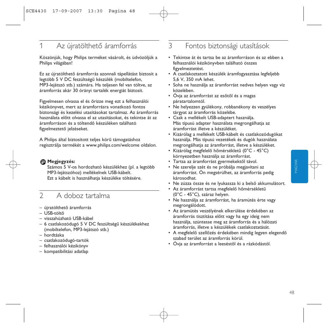 HASZNÁLATI ÚTMUTATÓ SCE4430 PHILIPS