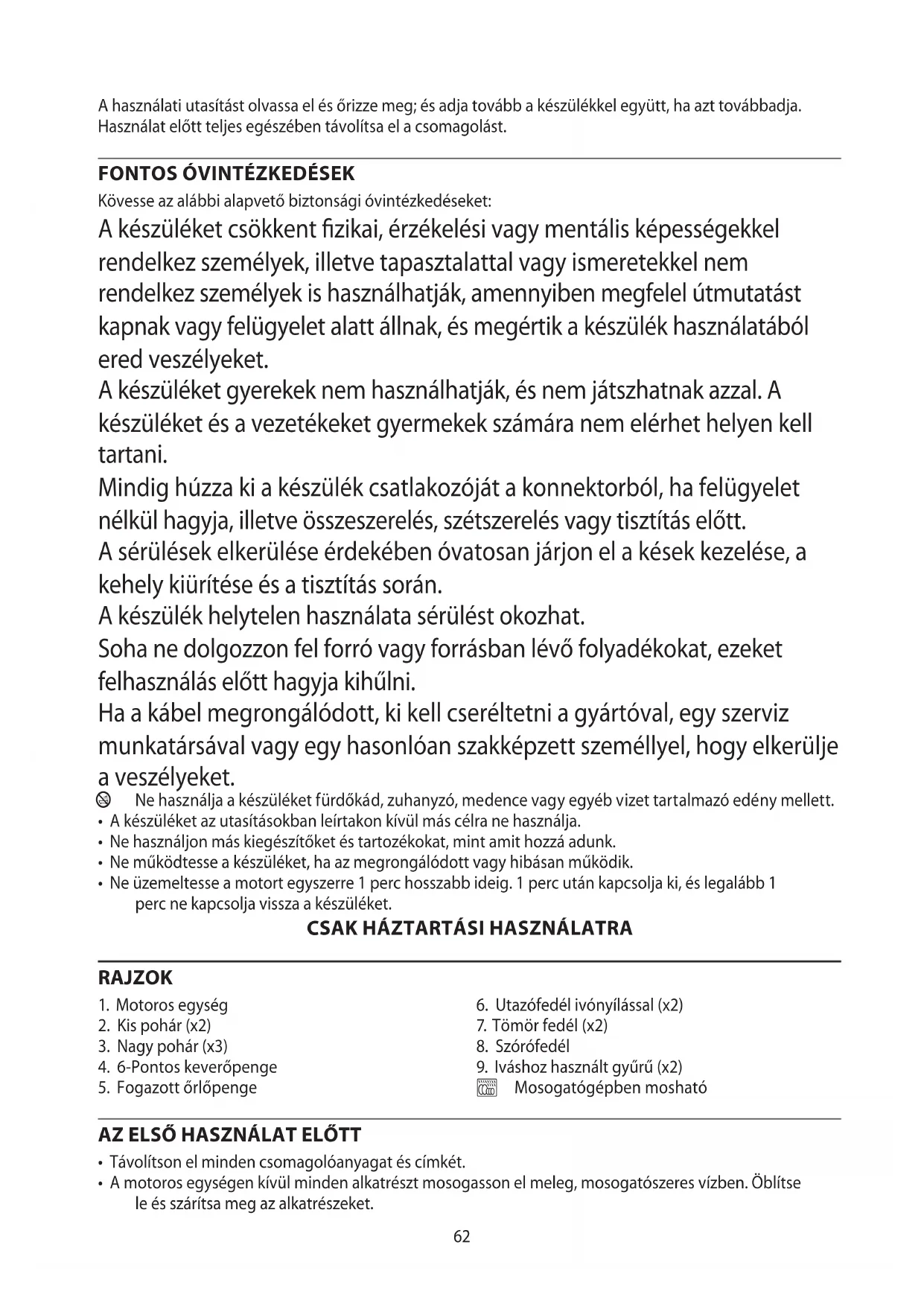 AE62 A használati utasítást olvassa el és őrizze meg; és adja tovább a készülékkel együtt, ha azt továbbadja. Használat előtt teljes egészében távolítsa el a csomagolást.