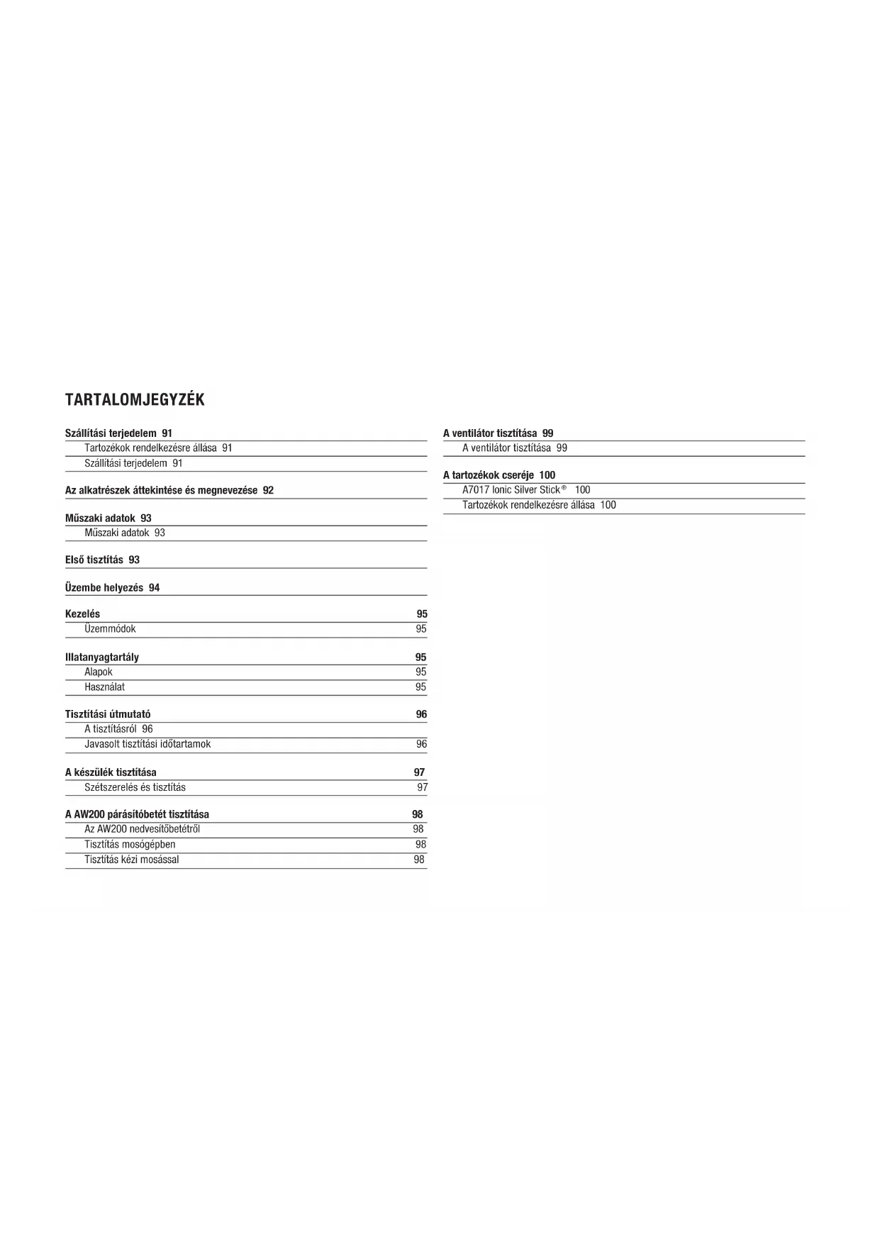 Alaposan tiszitsa meg az illatanyagartalyt, ha esetleg illatanyag-maradvanyokat tartalmaz (lasd 95. oldal). Mar nehany csepp elg a BONECO W200 keszulek elszinezeshez vagy karositasahoz.