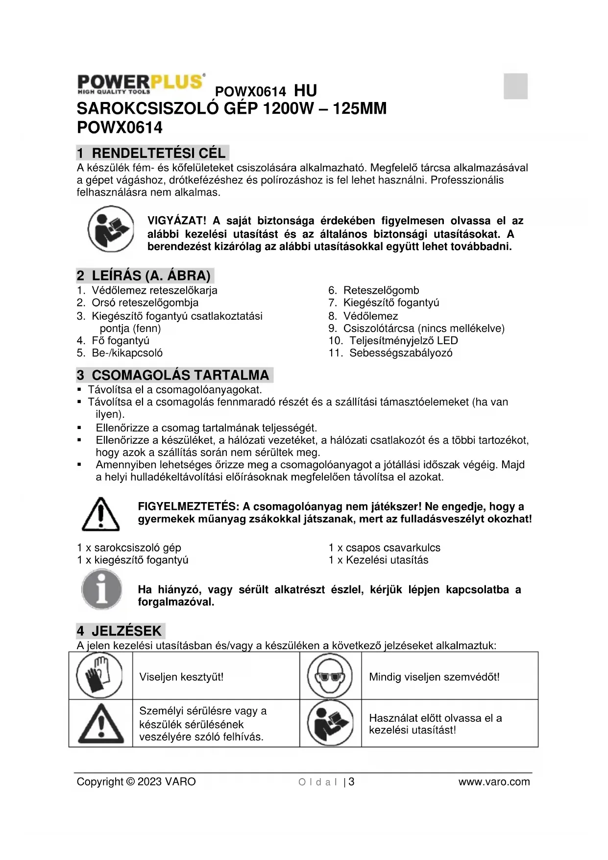 Használat előtt olvassa el a kezelési utasítást!POWX0614 HU Copyright © 2023 VARO O l d a l | 4 www.varo.com