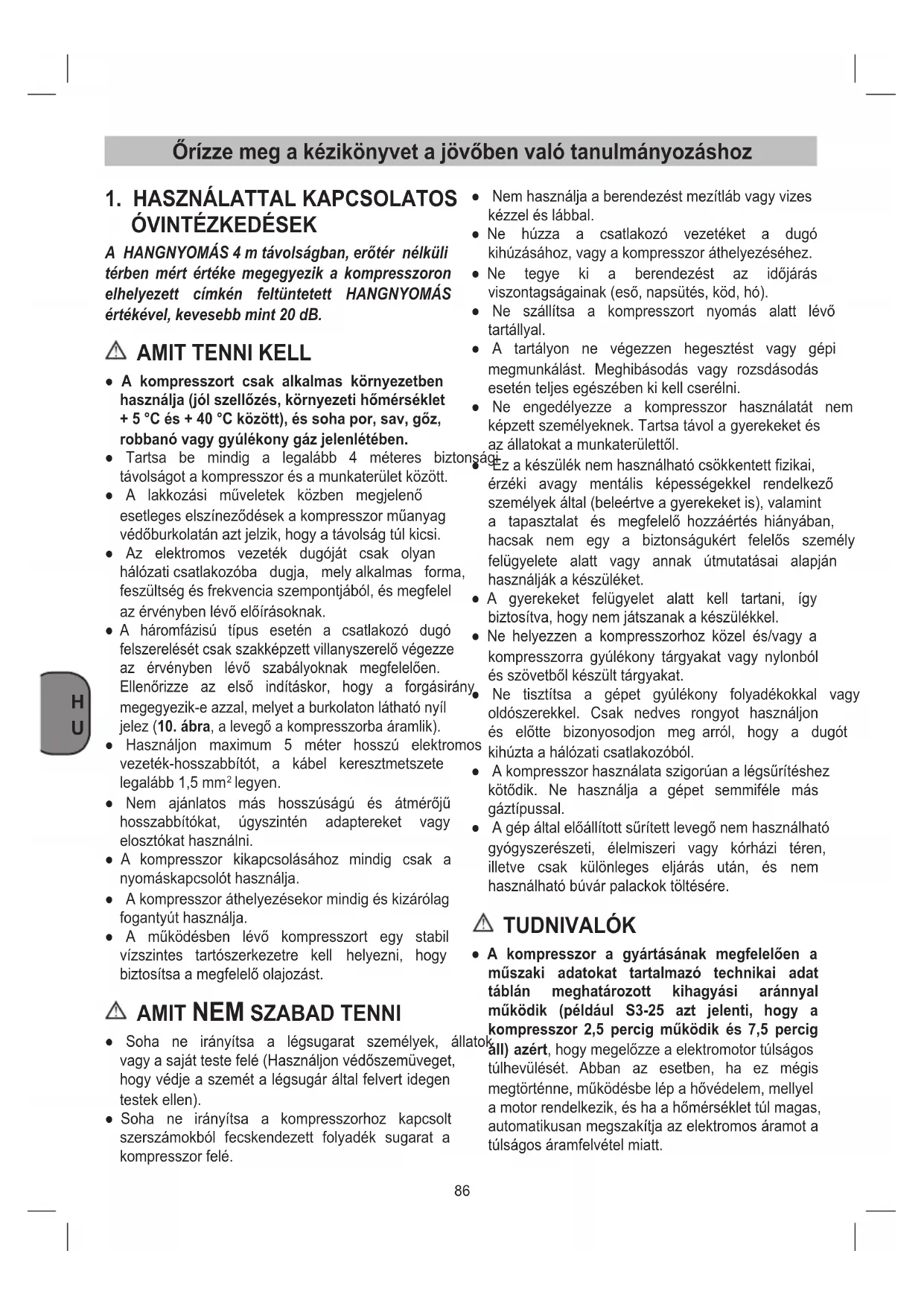 A kompresszortCsak szaraz es jogosulatlanok szamara nem hozzaferheto kornyezetben taroNl. Ne dontse meg,csak allva taroNl!