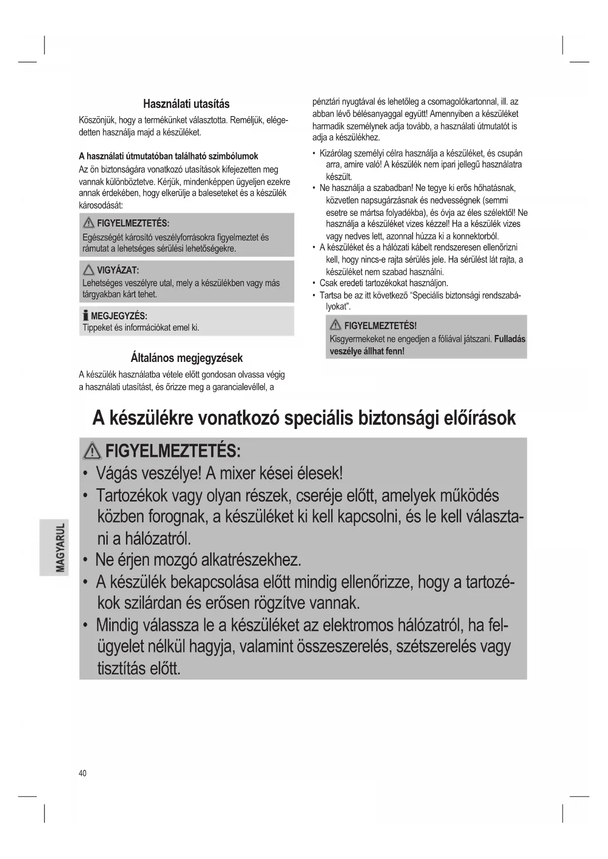 - Ne tegye a kezét a keverőkésekbe.42 A készülék kicsomagolása