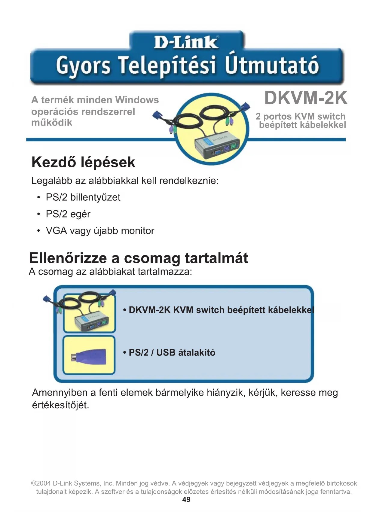 HASZNÁLATI ÚTMUTATÓ DKVM2K D-LINK
