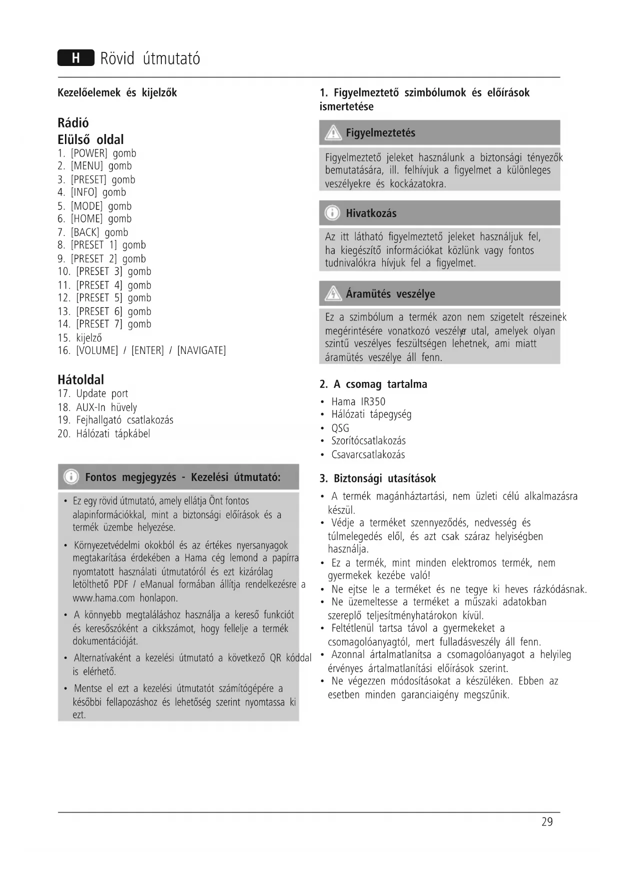 IR350 - Rádió HAMA - Ingyenes használati útmutató