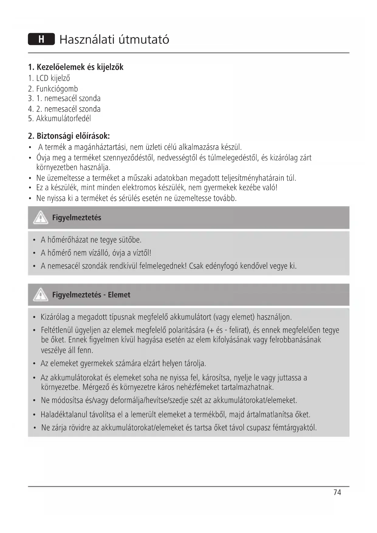 - A nemesacél szondák rendkívül felmelegednek! Csak edényfogó kendővel vegye ki. Figyelmeztetés - Elemet