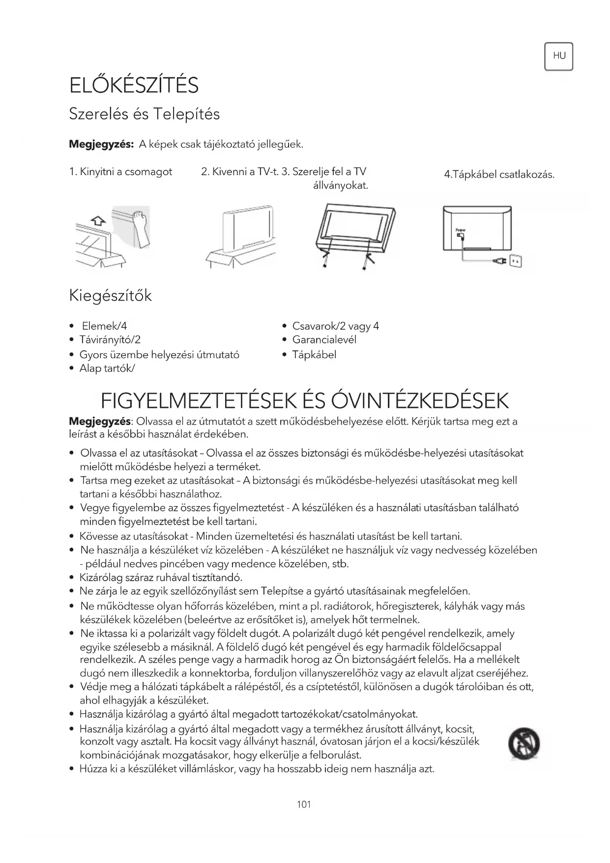 Megjegyzés: Olvassa el az útmutatót a szett működésbehelyezése előtt. Kérjük tartsa meg ezt a leírást a későbbi használat érdekében.