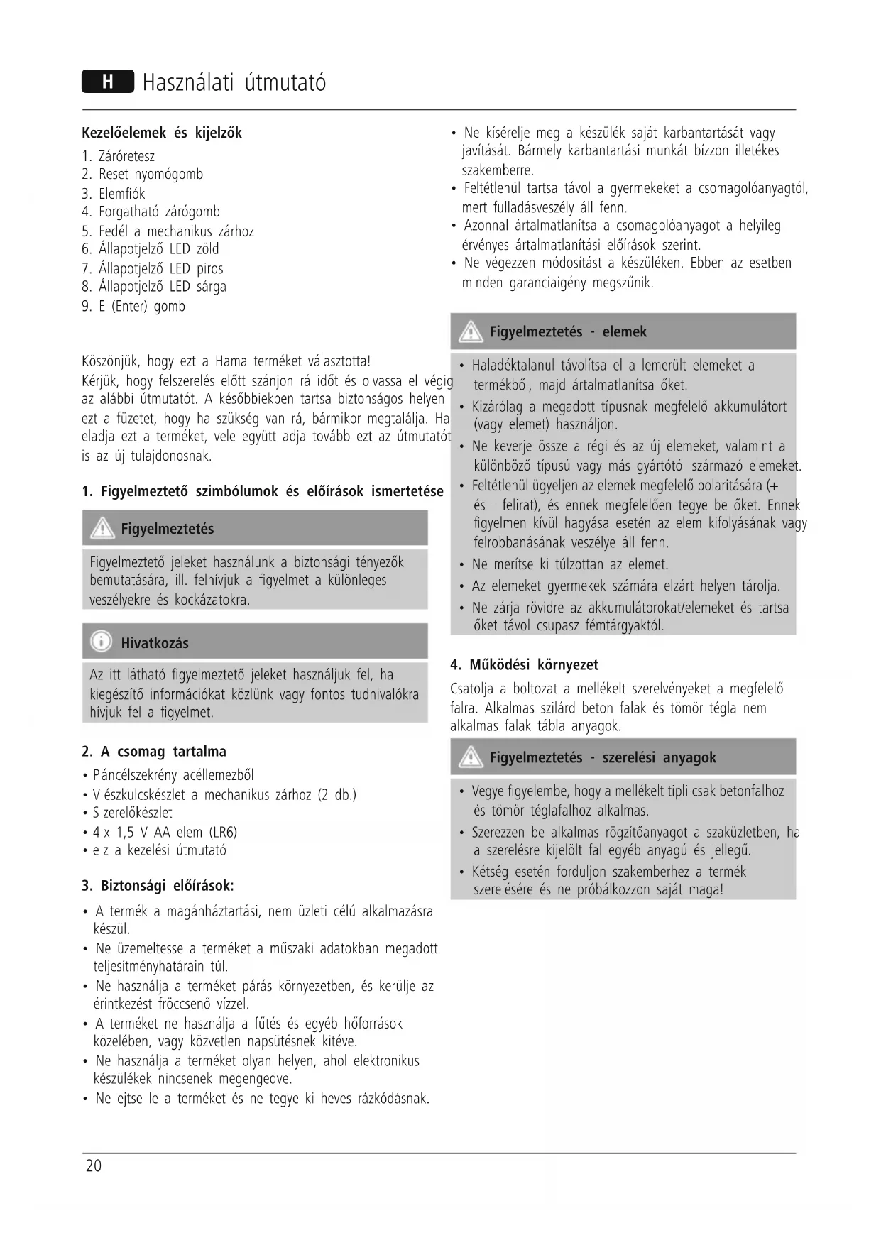 Home EP170 - Páncélszekrény HAMA - Ingyenes használati útmutató