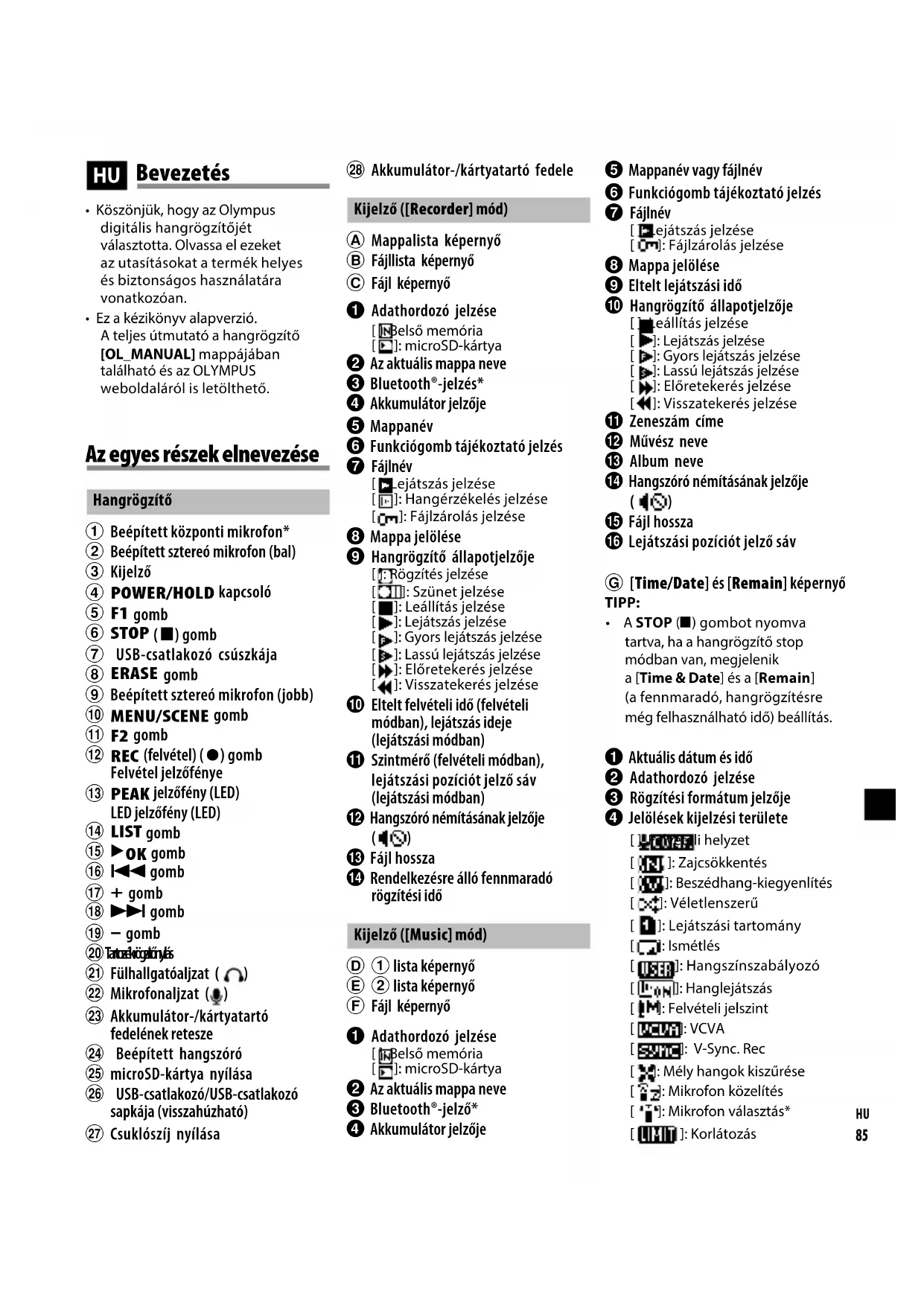 - Ez a kézikönyv alapverzió. Ateljesútmutató a hangrögzítő [OL_MANUAL] mappájában található és az OLYMPUS weboldaláról is letölthető. Bevezetés