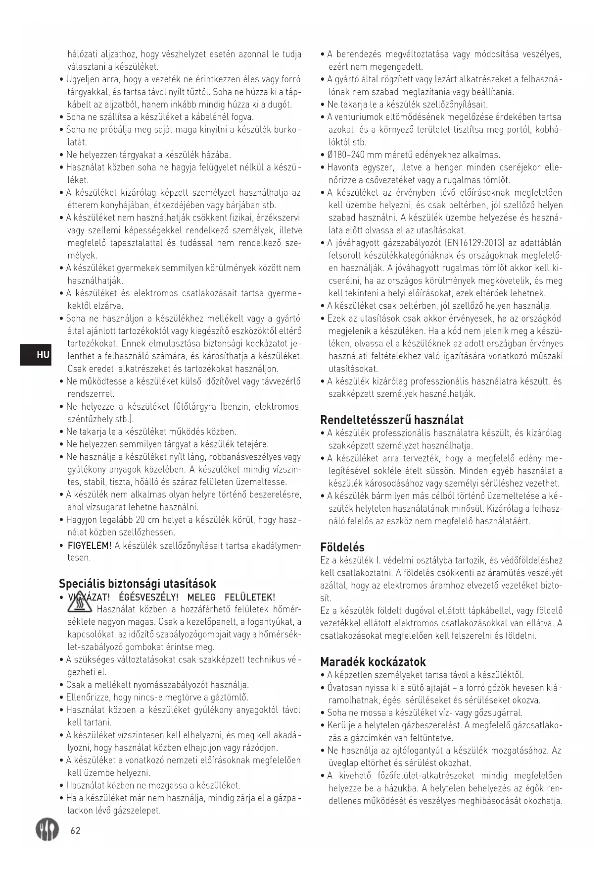 - VIGYÁZAT! ÉGÉSVESZÉLY! MELEG FELÜLETEK! Használat közben a hozzáférhető felületek hőmér