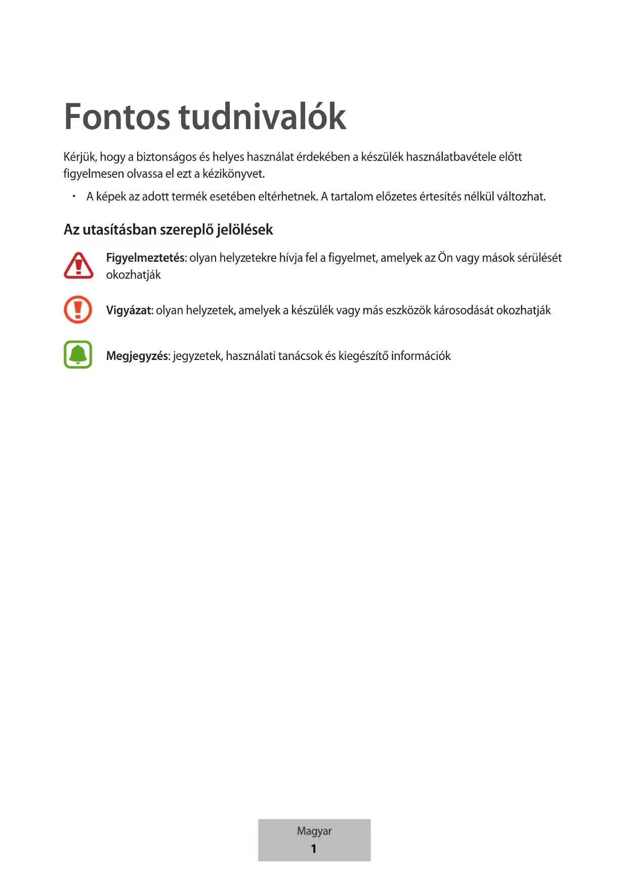 Fontos tudnivalók Kérjük, hogy a biztonságos és helyes használat érdekében a készülék használatbavétele előtt figyelmesen olvassa el ezt a kézikönyvet.
