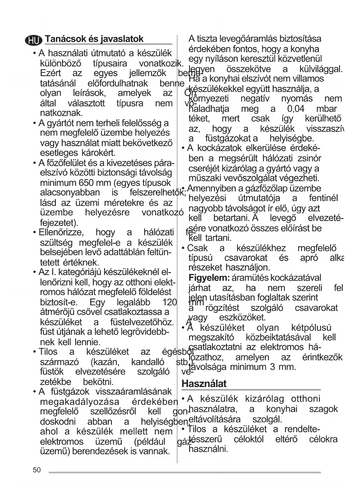 - A készülék kizárólag otthoni használatra, a konyhai szagok eltávolítására szolgál.