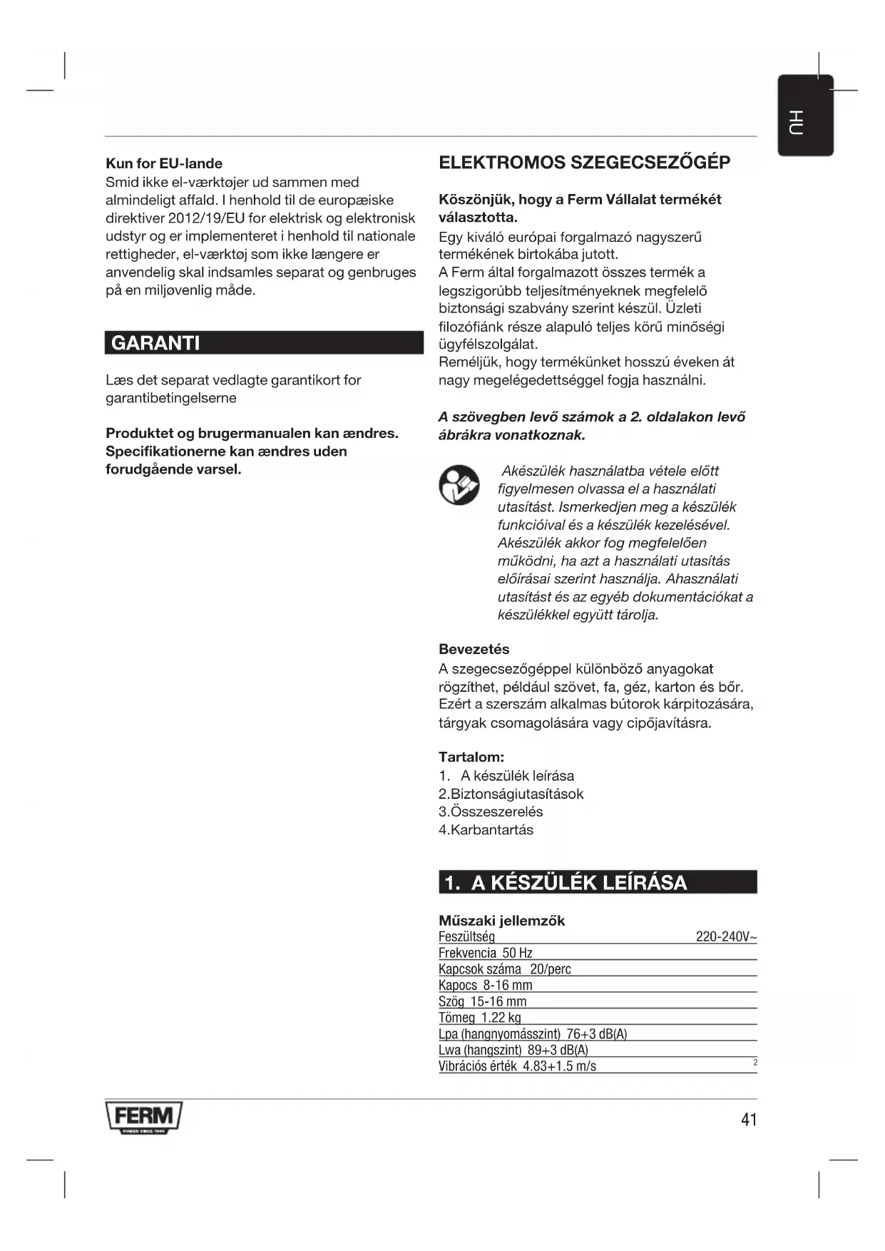 Köszönjük, hogy a Ferm Vállalat termékét választotta.