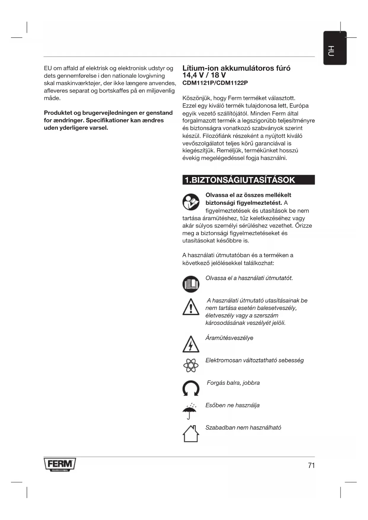 Köszönjük, hogy Ferm terméket választott. Ezzel egy kiváló termék tulajdonosa lett, Európa egyik vezető szállítójától. Minden Ferm által forgalmazott termék a legszigorúbb teljesítményre és biztonságra vonatkozó szabványok szerint készül. Filozóánk részeként a nyújtott kiváló vevőszolgálatot teljes körű garanciával is kiegészítjük. Reméljük, termékünket hosszú évekig megelégedéssel fogja használni.