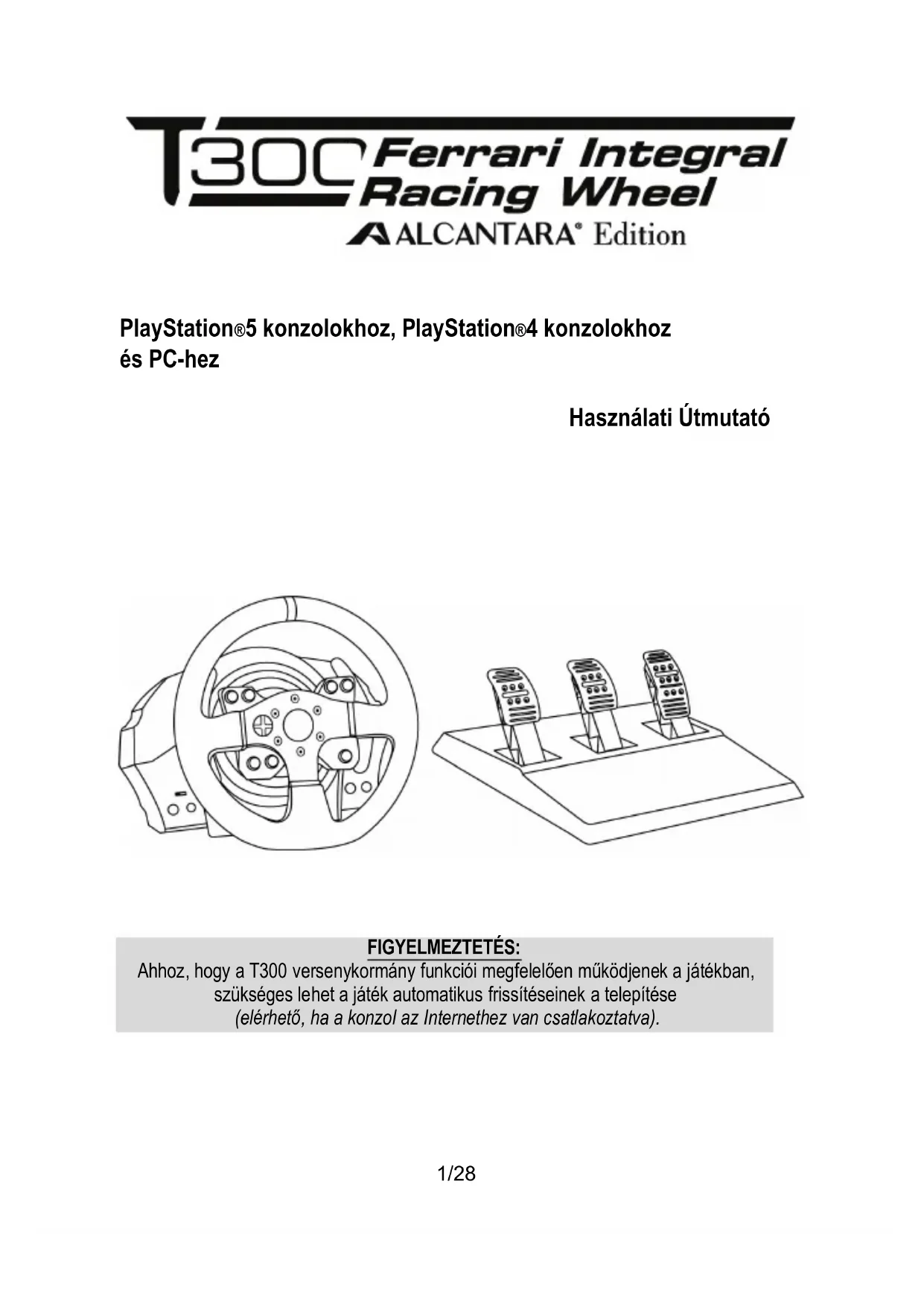 FIGYELMEZTETÉS: Ahhoz, hogy a T300 versenykormány funkciói megfelelően működjenek a játékban, szükséges lehet a játék automatikus frissítéseinek a telepítése (elérhető, ha a konzol az Internethez van csatlakoztatva).2/28