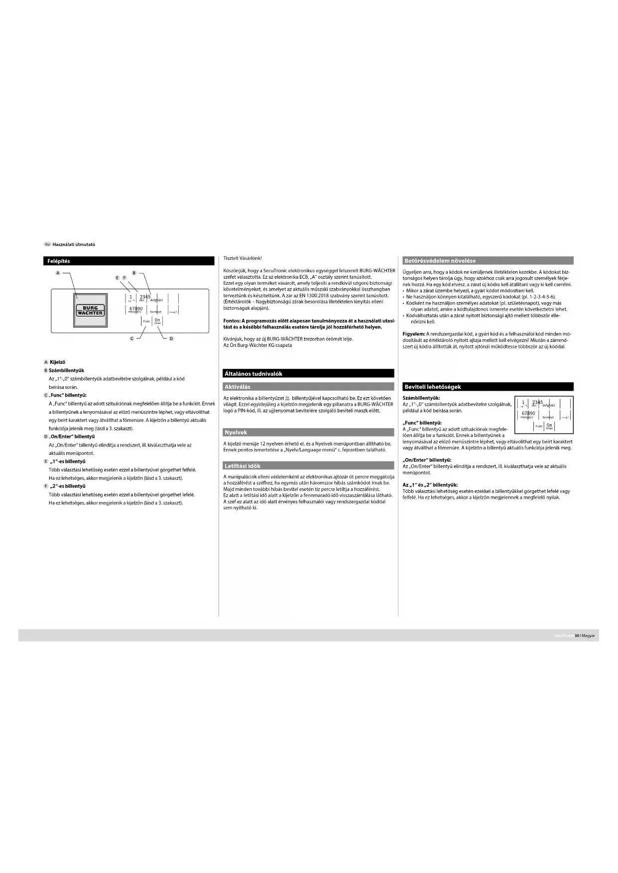 Az elektronika bilentyüzet bilentyüyükapcsolhato Be. Erzt kowdeten vilagit. Ezzel egyindejügel a kijelzön megejenik egg pylonatna a BURG-WACHTER ogo a PIN-kod, ilz. az ujiyemoyat bevitëre szolgåd bevitëti maske elstift.