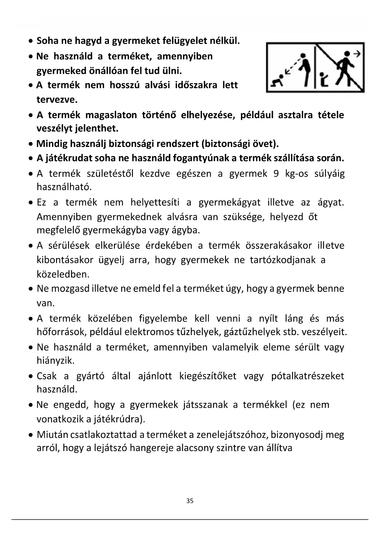 - Ne mozgasd illetve ne emeld fel a terméket úgy, hogy a gyermek benne van.