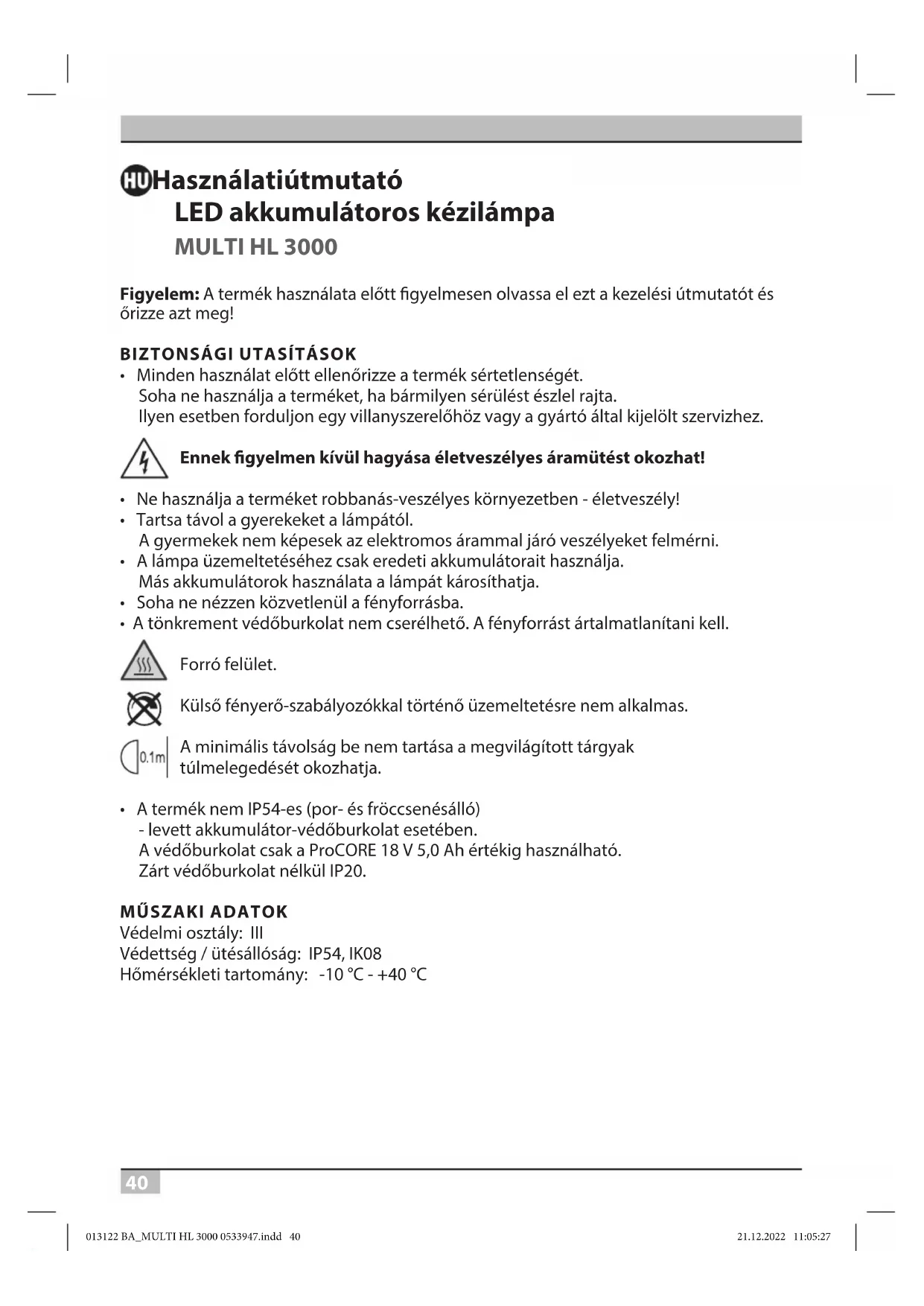 Az EU-megfelelőségi nyilatkozat a gyártónál található. 013122 BA_MULTI HL 3000 0533947.indd 42013122 BA_MULTI HL 3000 0533947.indd 42 21.12.2022 11:05:2721.12.2022 11:05:2743 MULTI HL 3000 Használati útmutató