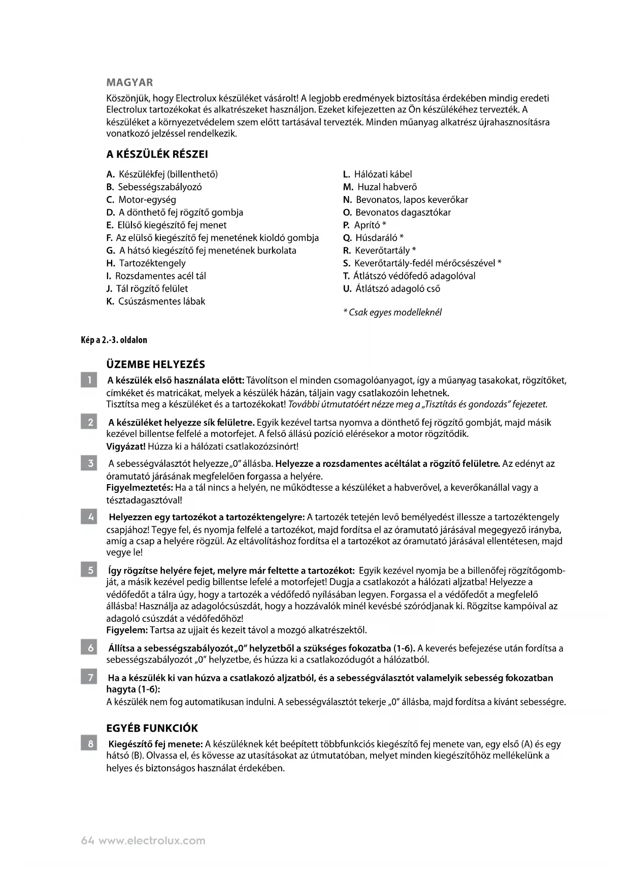 8 Kiegészítő fej menete: A készüléknek két beépített többfunkciós kiegészítő fej menete van, egy első (A) és egy hátsó (B). Olvassa el, és kövesse az utasításokat az útmutatóban, melyet minden kiegészítőhöz mellékelünk a helyes és biztonságos használat érdekében.65www.electrolux.com