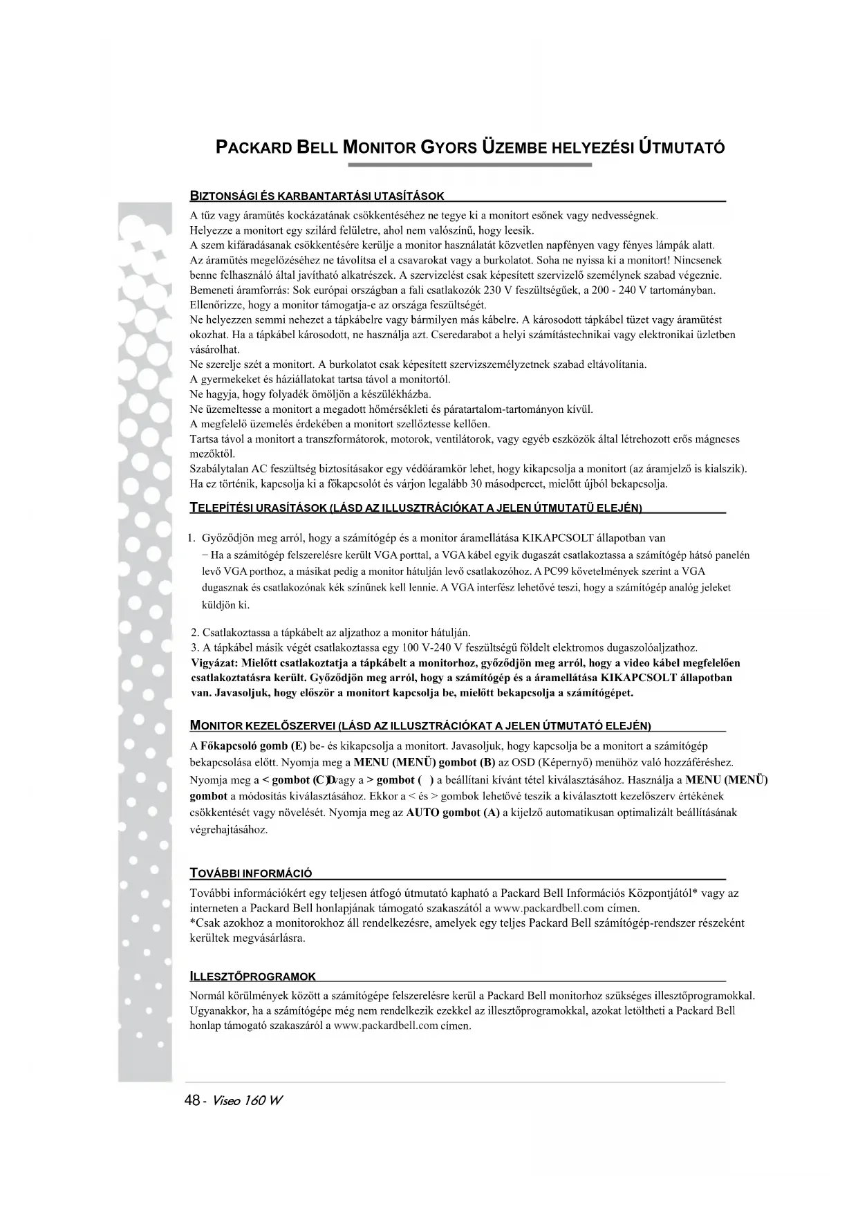 Töltse le az útmutatót a következőhöz Monitor PDF formátumban ingyenesen! Találja meg kézikönyvét Viseo 160 W - PACKARD BELL és vegye vissza elektronikus eszközét a kezébe. Ezen az oldalon közzé van téve az eszköze használatához szükséges összes dokumentum. Viseo 160 W márka PACKARD BELL.