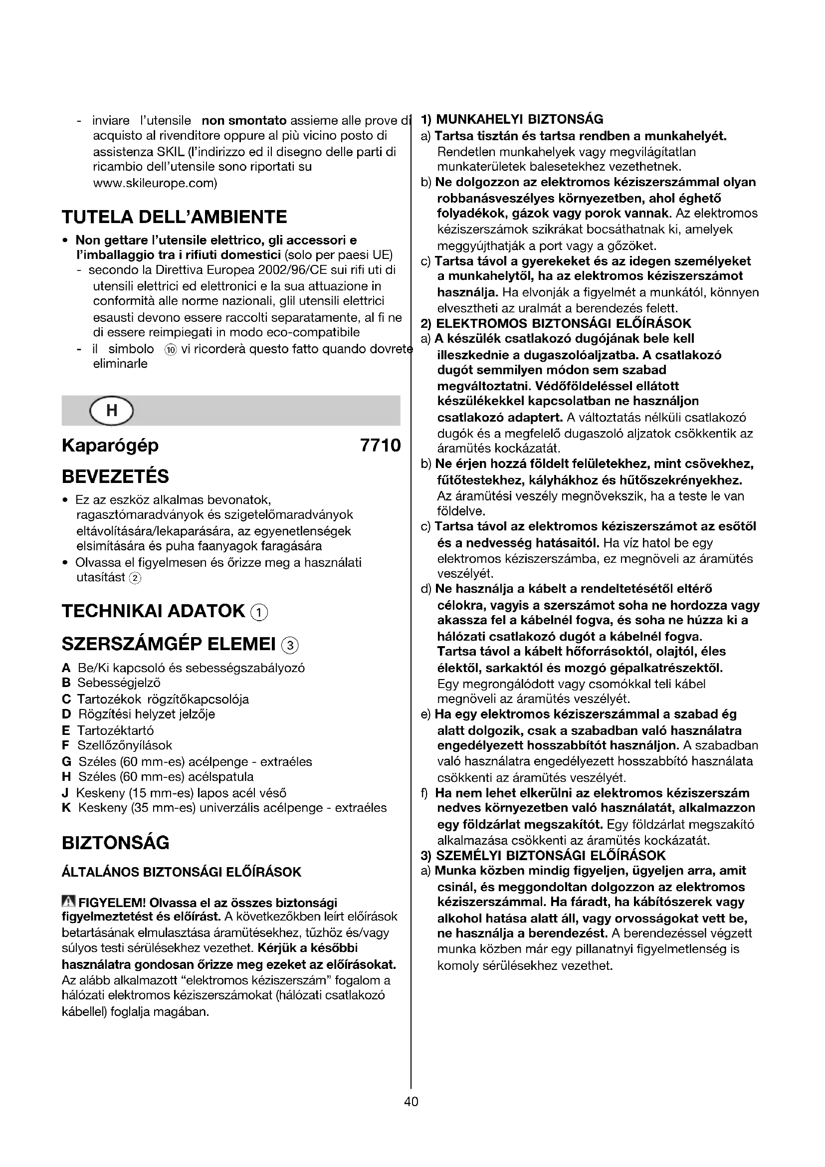 HASZNÁLATI ÚTMUTATÓ 7710 AA SKIL