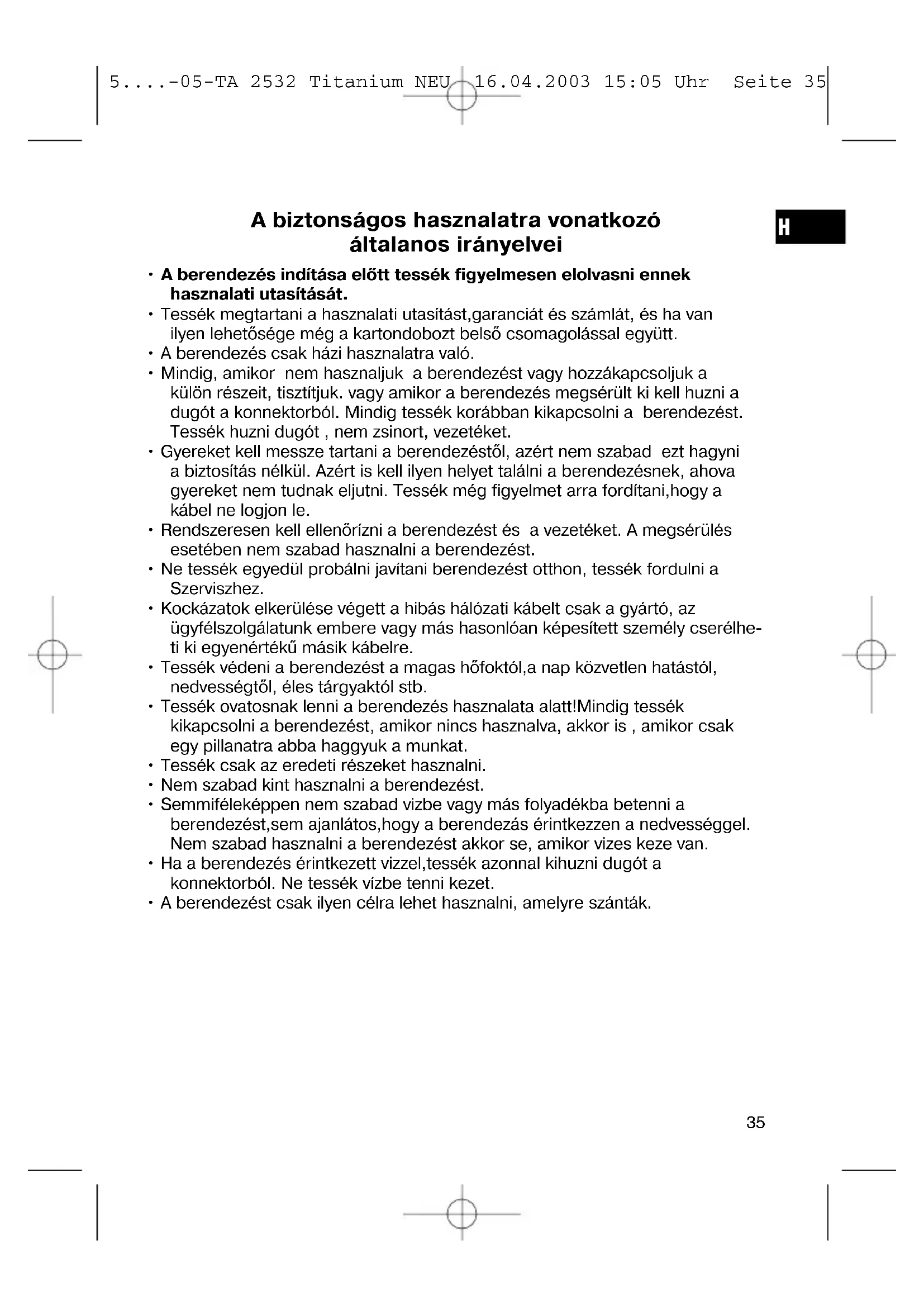 5....-05-TA 2532 Titanium NEU 16.04.2003 15:05 Uhr Seite 35A készülékre vonatkozó speciális biztonsági rendszabályok