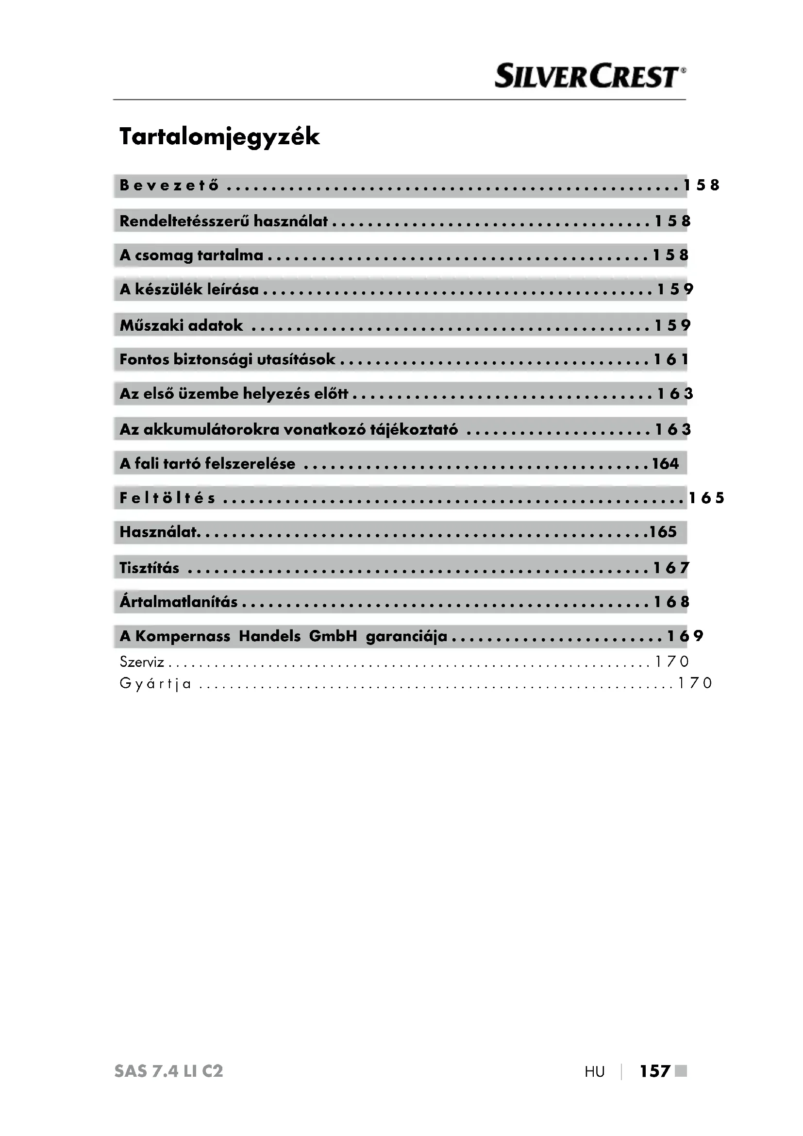 HASZNÁLATI ÚTMUTATÓ SAS 7.4 LI C2 SILVERCREST