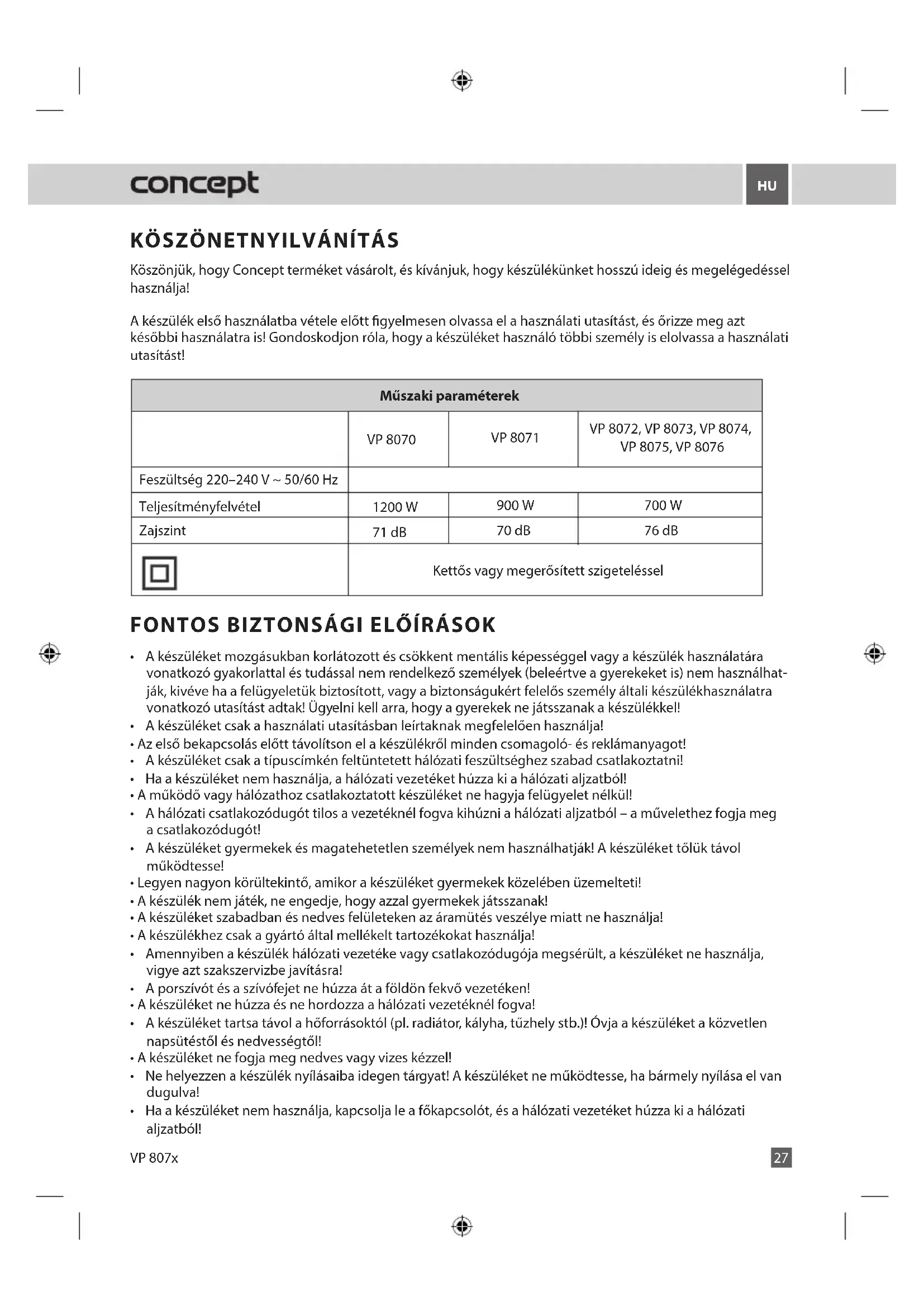 HASZNÁLATI ÚTMUTATÓ VP8074 Concept