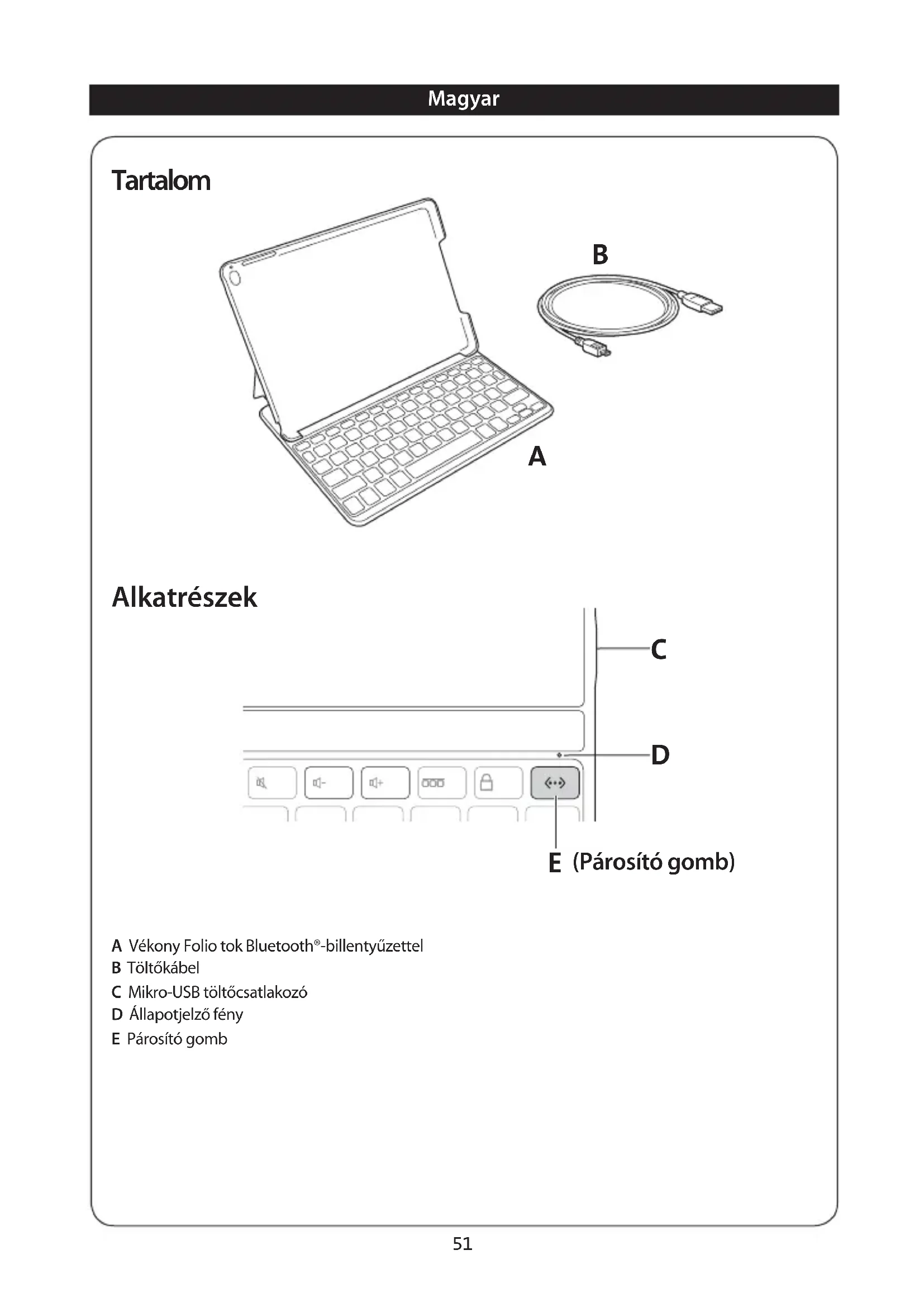 - Hasznalat elott ellenorizze, hogy a KeyFolio es a kabelek nem sereultek-e meg. A serult reszeket javittassa meg vagy cserelje ki hasznalat elottt.