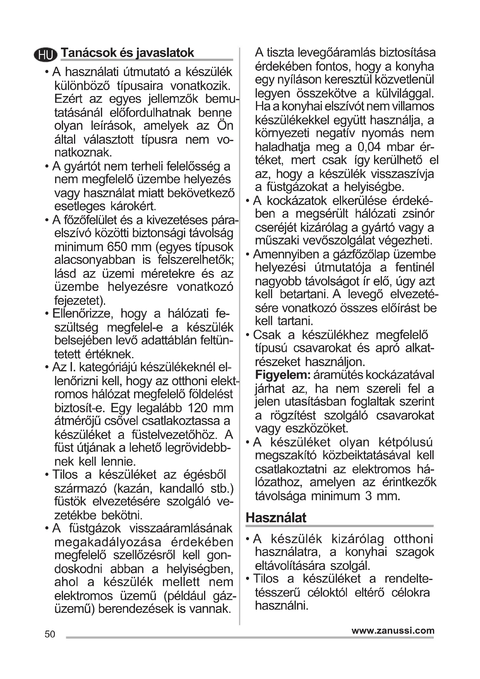 - A készülék kizárólag otthoni használatra, a konyhai szagok eltávolítására szolgál.