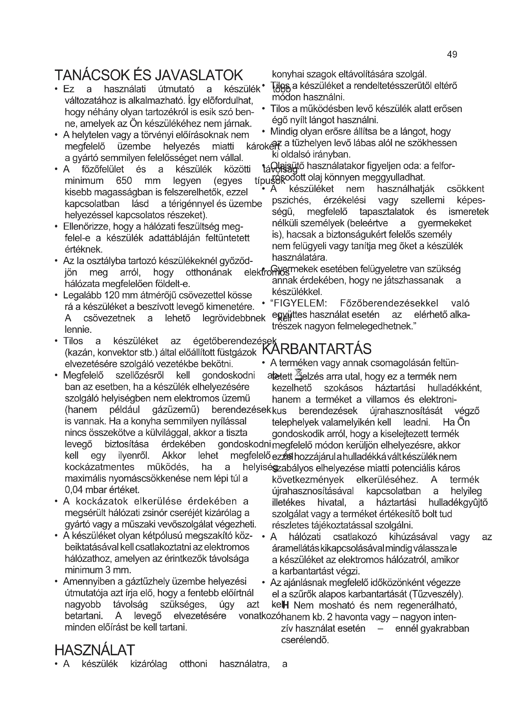 - A készülék kizárólag otthoni használatra, a konyhaiszagokeltávolításáraszolgál.