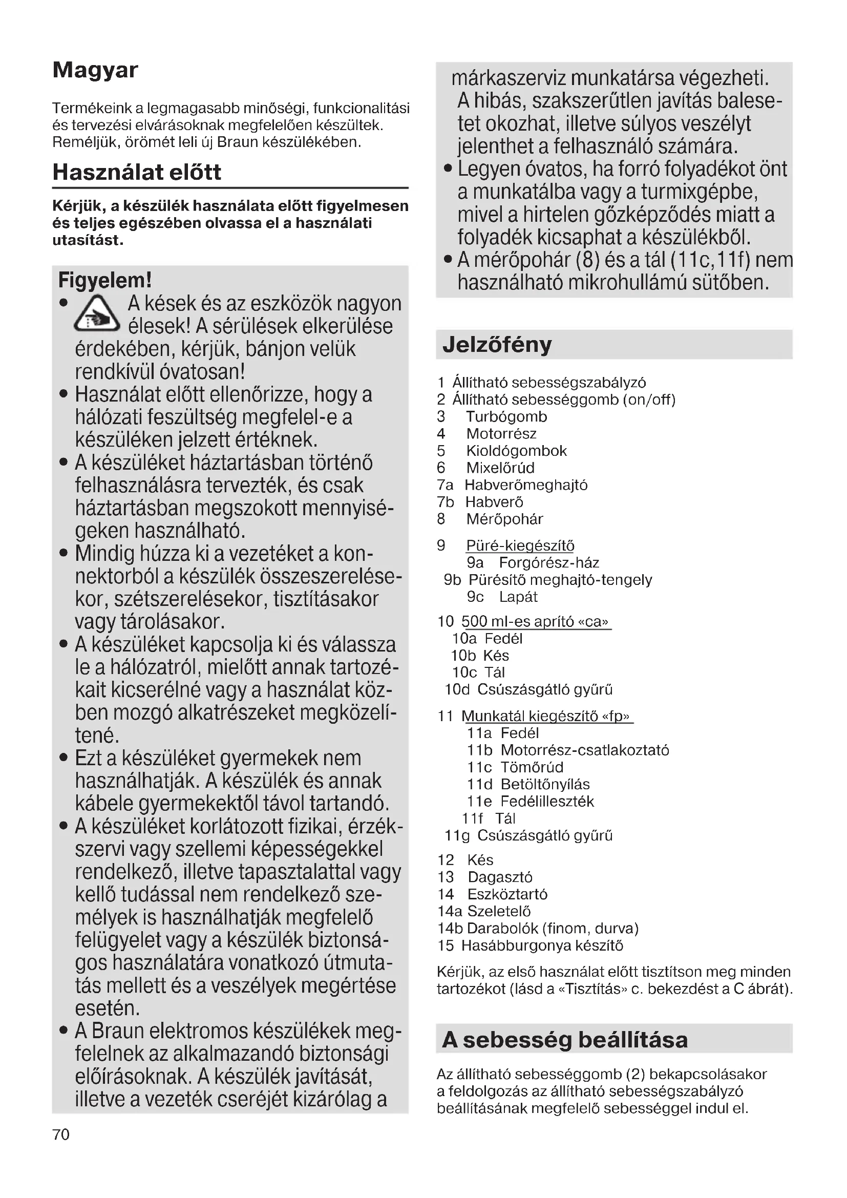A Braun elektromos készülékek meg- felelnek az alkalmazandó biztonsági előírásoknak. A készülék javítását, illetve a vezeték cseréjét kizárólag a márkaszerviz munkatársa végezheti. A hibás, szakszerűtlen javítás balese- tet okozhat, illetve súlyos veszélyt jelenthet a felhasználó számára.