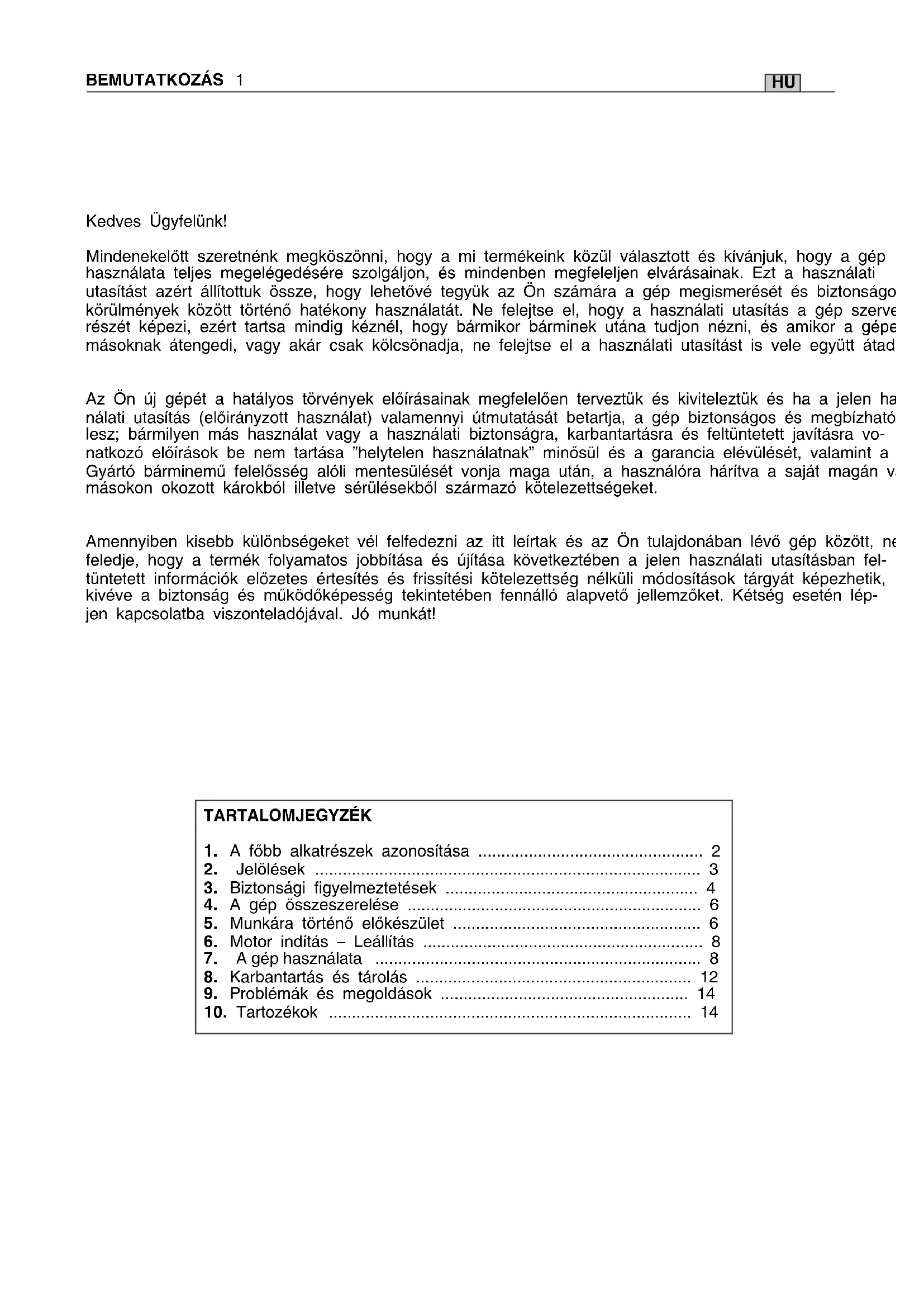 el figyelmesen a használati utasítást. Is- merje meg a kezelőszerveket, és sajátítsa el e gép kezelését. Tanulja meg a motor gyors leállítását.