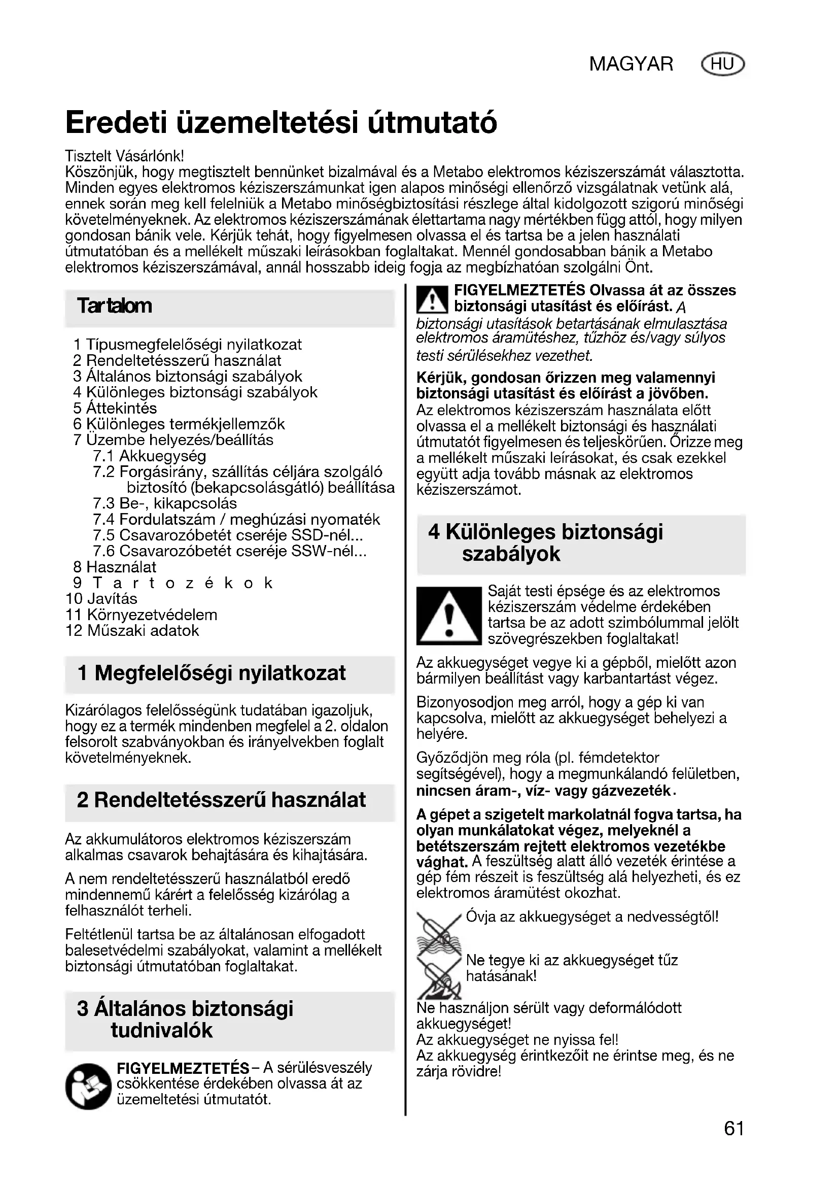 | Karbantart e1s e9s jav edt e1s | Rendszeresen ellen51rizze az akkumul e1tor e9s a tokm e1ny e1llapot e1t, tiszt edtsa meg a leveg51sz71r51ket, ha van ilyen. |