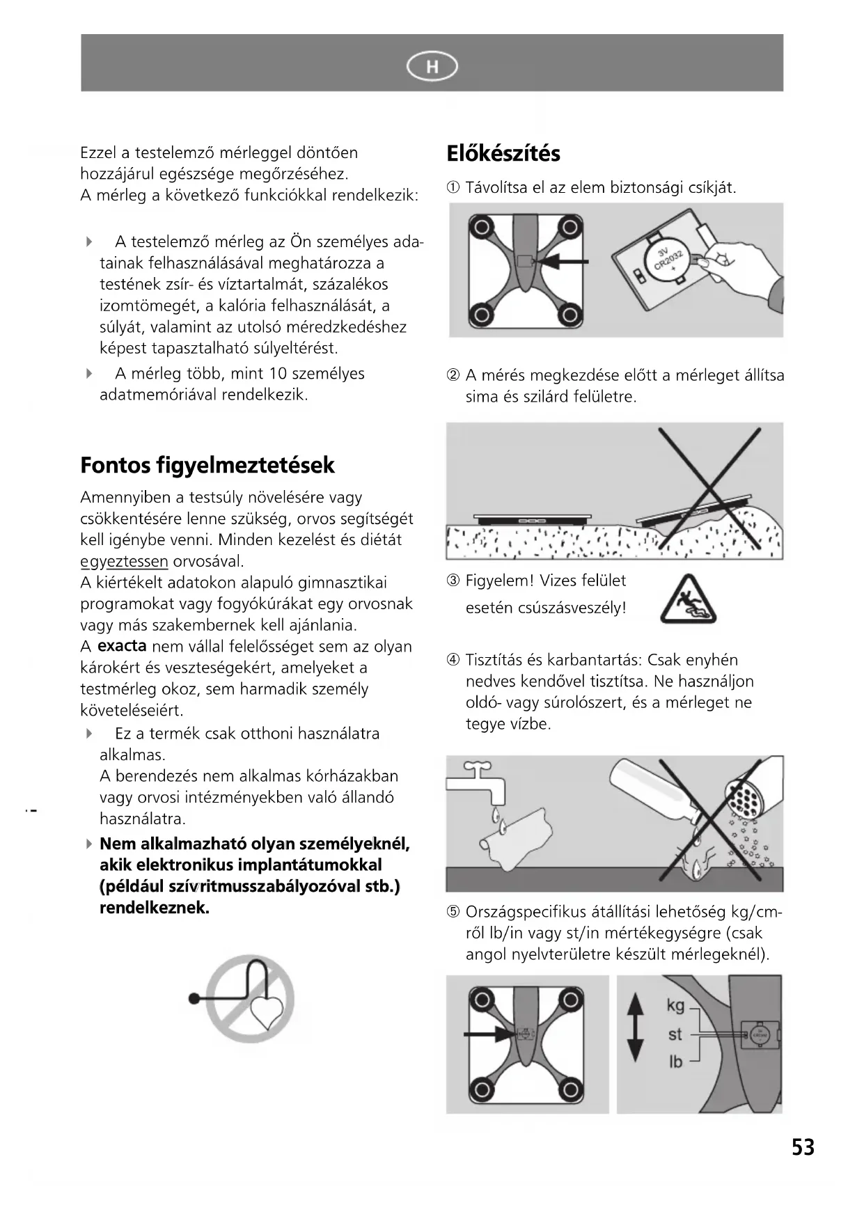 ④ Tisztítas és karbantartás: Csak enyhén nedves kendóvel tisztítsa. Ne használjon oldó- vagy surolószert, és a merleget ne tegye vizbe.